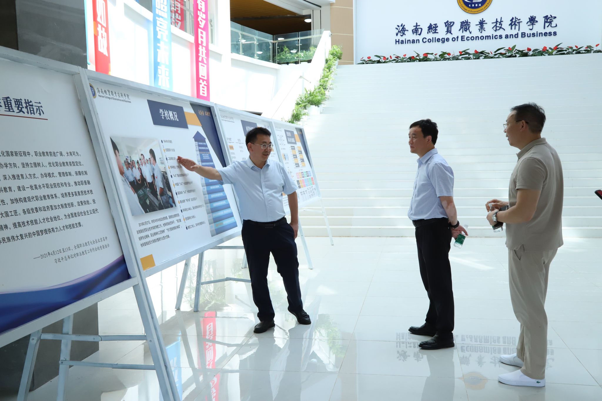 崔昌华陪同汤泾洪一行参观校园,先后来到数智财务产教融合实践基地、智慧旅游产教融合实训基地、汽车检测与维修实训中心、新一代信息技术ICT产教融合基地和图书馆。有关负责人介绍了专业设置、课程建设、学生实习就业等情况。汤泾洪对海经贸“双高”建设取得的成绩表示肯定和赞赏。