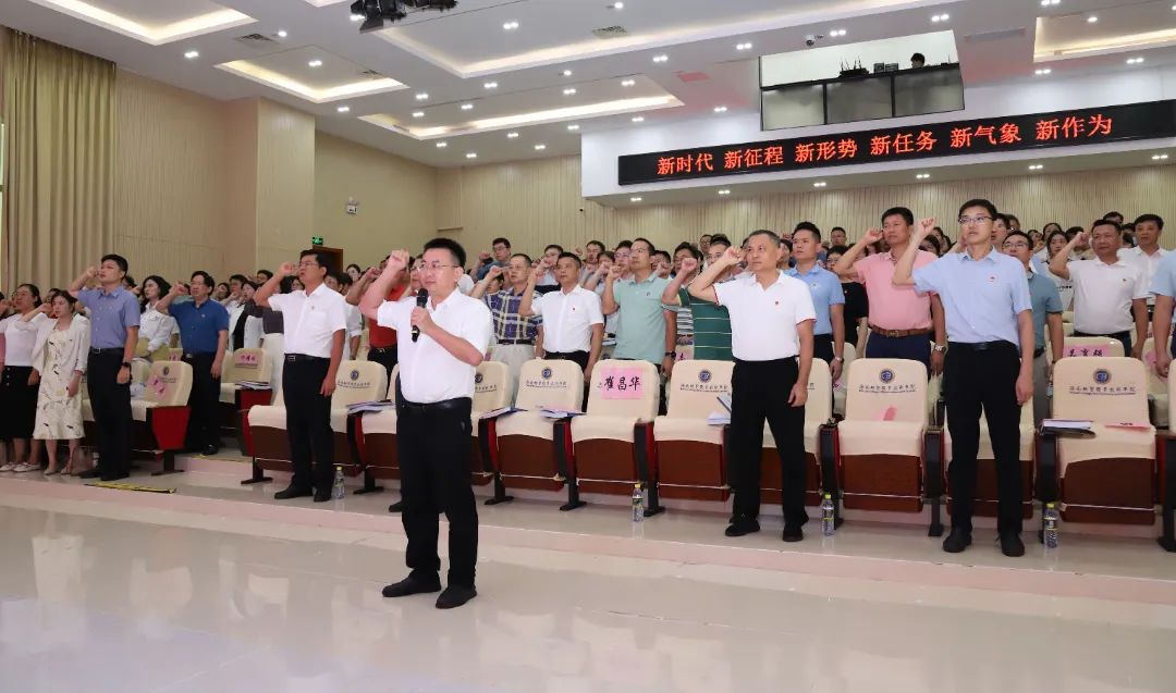 伴随着庄严雄壮的国歌声,大会正式拉开帷幕。全体党员面向党旗,重温入党誓词,铿锵有力的誓言是每一位党员对党和人民的庄严承诺。大家的声音汇聚成一股强大的力量,响彻会场,振奋人心。