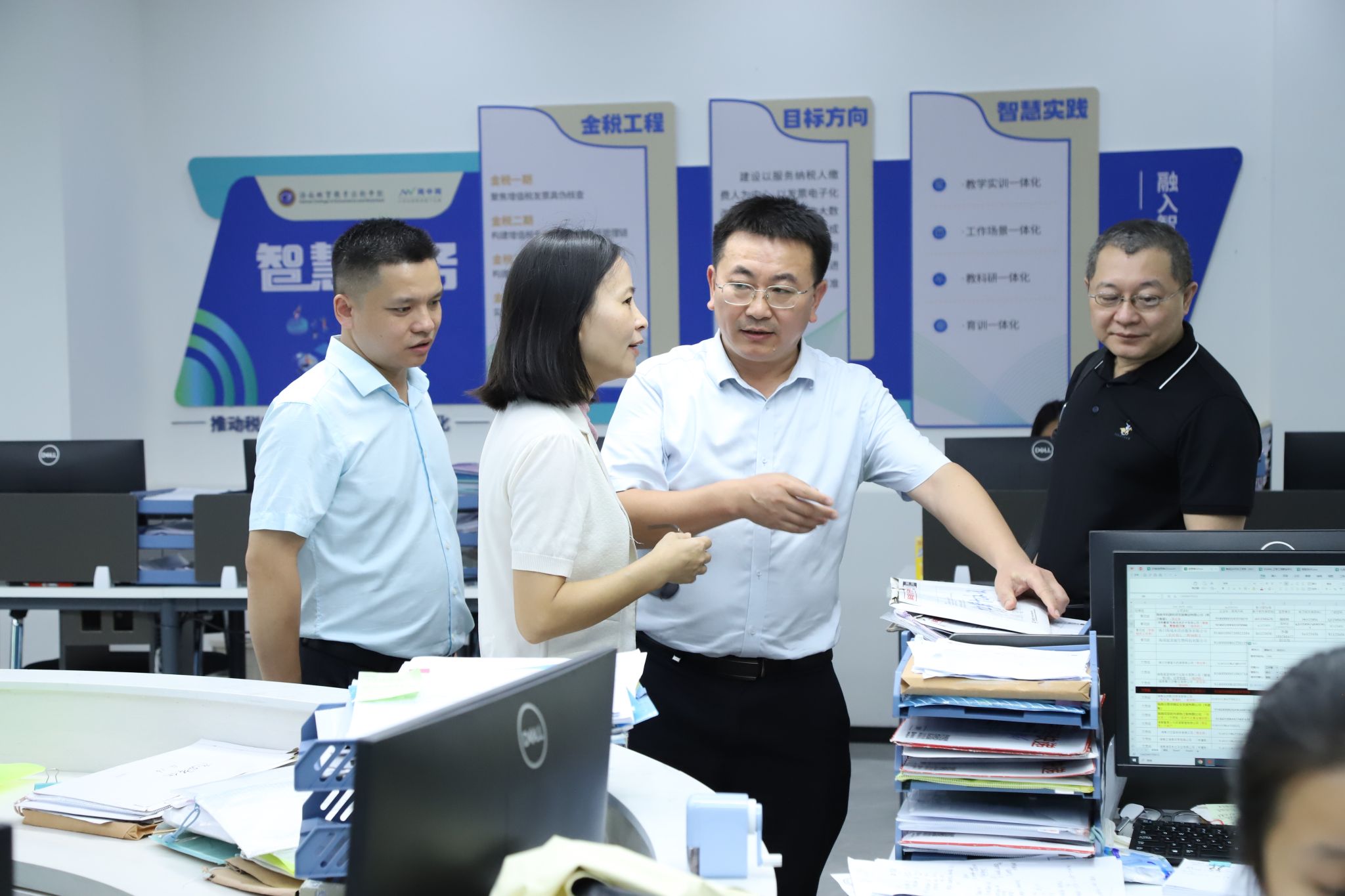 崔昌华陪同陈桦一行参观考察校园,先后来到正保财务云共享中心、理想汽车产业学院、智慧旅游产教融合实训基地和新一代信息技术ICT产教融合基地,有关负责人介绍了校企合作、人才培养、学生实训等情况。崔昌华在图书馆介绍了学校整体办学和发展情况以及“双高”建设取得的成绩。