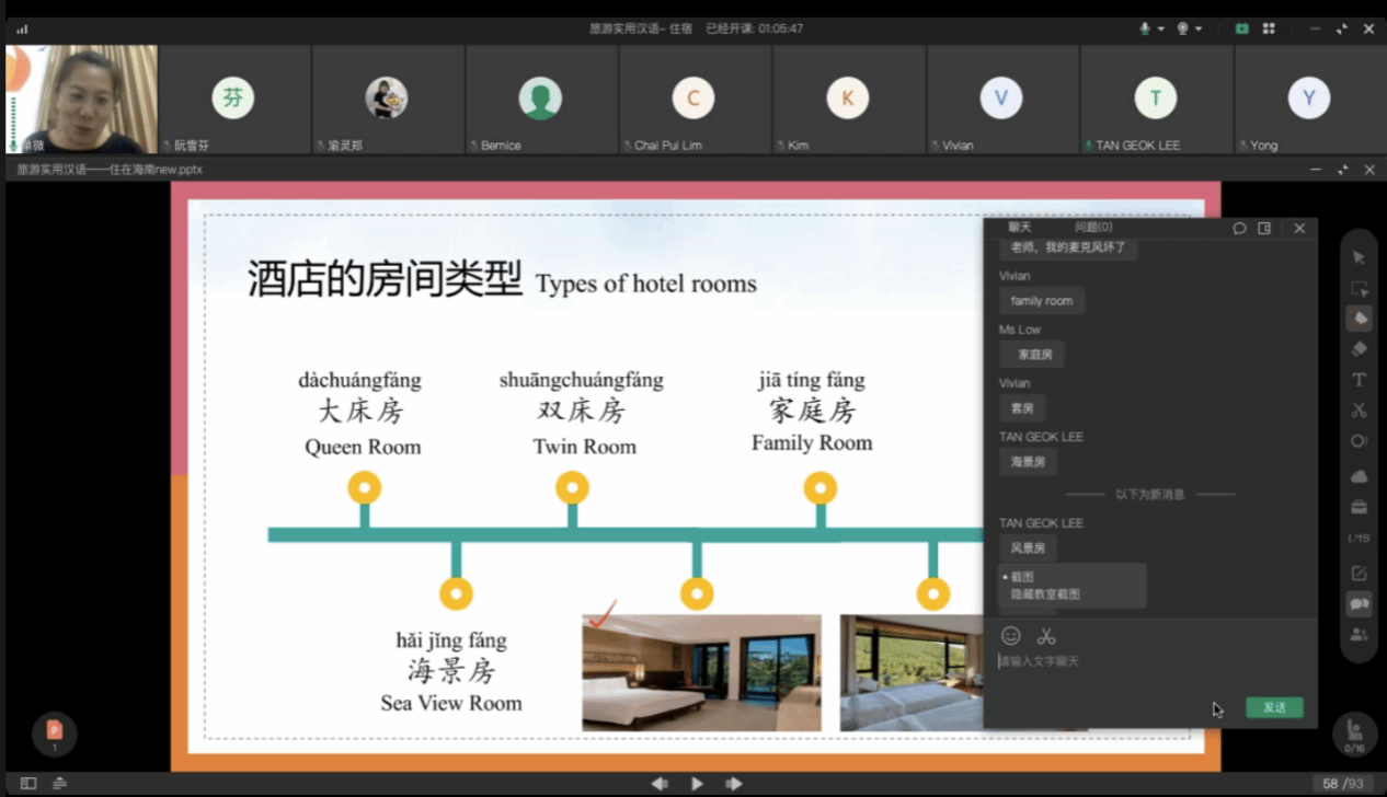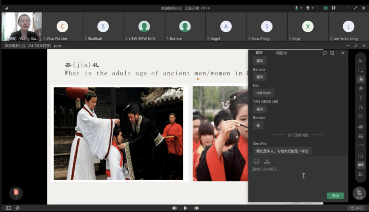 近日,beat365vip官网登录入口与马来西亚北吉隆坡国际学院合作共建的中文学习测试中心(以下简称“中心”)开展“中文+旅游管理”线上教学培训活动。来自马来西亚北吉隆坡国际学院师生、管理人员及中资企业员工等共计101人次参加培训。
