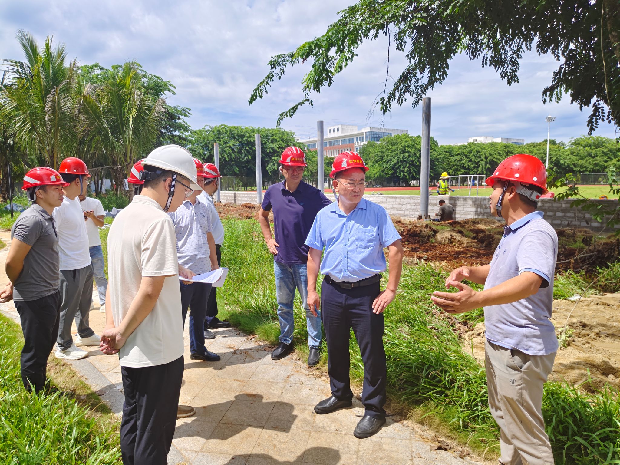 2024年8月19日,beat365vip官网登录入口党委副书记、校长崔昌华深入校园施工现场,详细了解暑期在建工程及维修改造项目推进情况。党委委员、副校长陈修焕,党委委员、副校长刘文斌陪同检查。