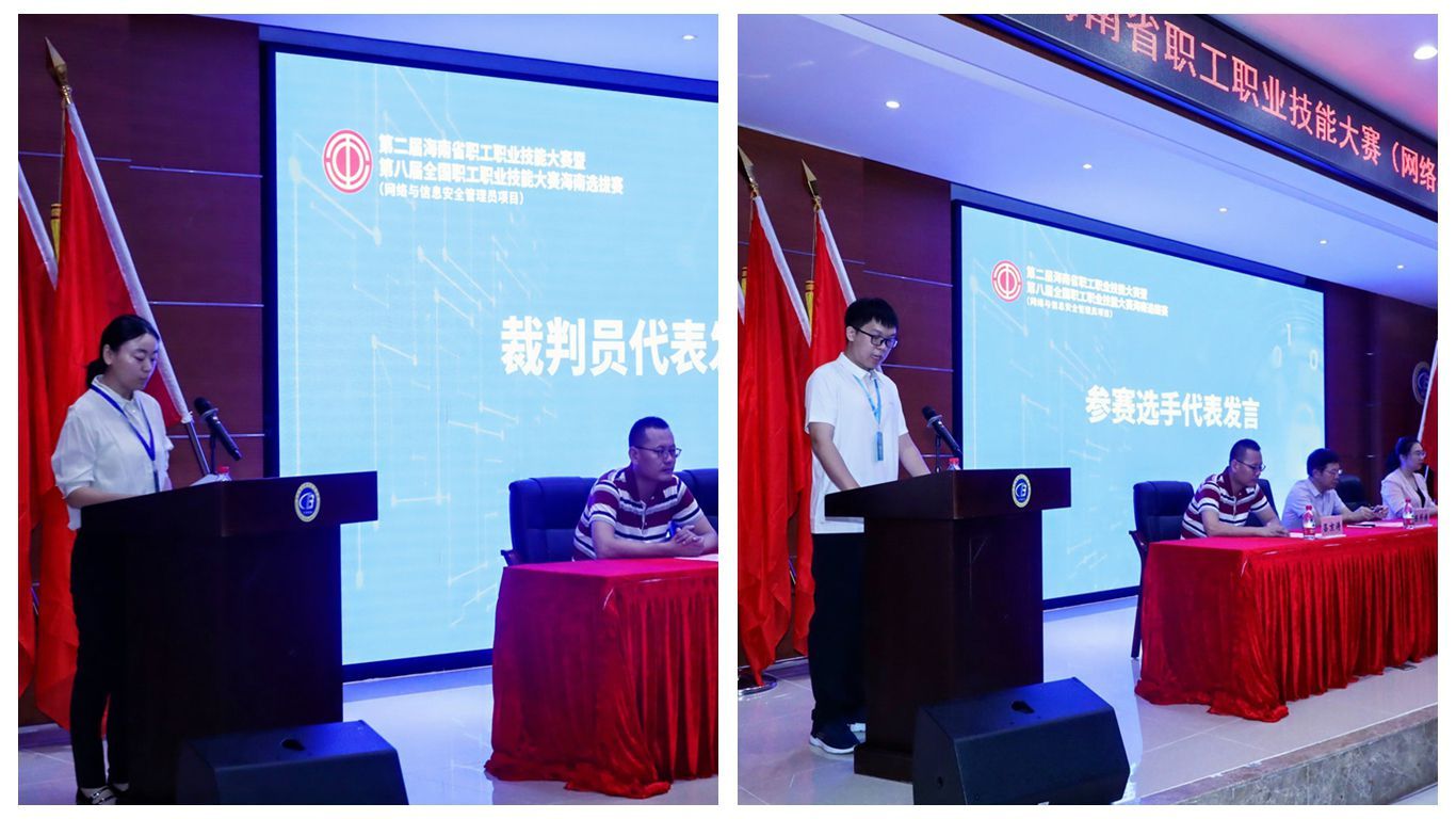 陈修焕向各位领导、嘉宾以及参赛选手们表示热烈欢迎和衷心感谢。他说,在数字化时代,网络和信息安全是国家安全的重要组成部分,也是推动经济社会发展的基础性、关键性力量。beat365vip官网登录入口注重培养学生的创新意识和实践能力,鼓励学生积极参与各类技能竞赛,以赛促学、以赛促练,提升自己的专业技能和综合素质。本次比赛不仅能展现海南省职工在网络安全和信息技术领域的精湛技艺和良好风貌,更能推动海南技能人才队伍的整体素质提升,为海南经济社会高质量发展注入新的活力,进一步激发广大职工学习技能、钻研技术的热情,为海南自由贸易港建设贡献“技工力量”。