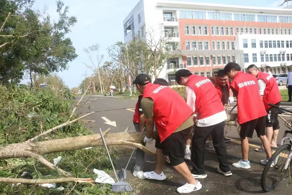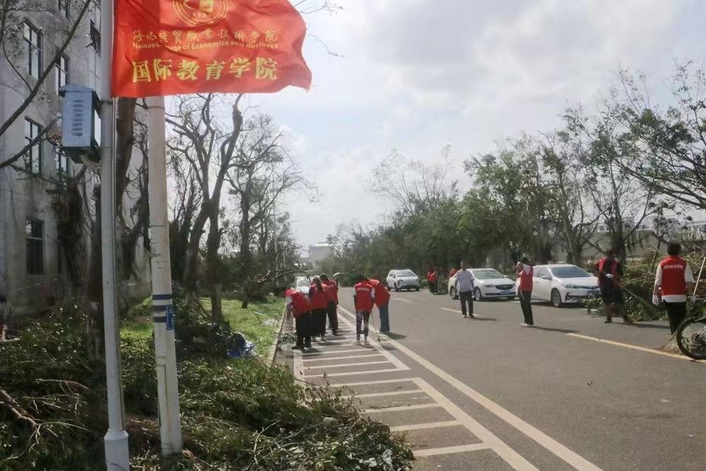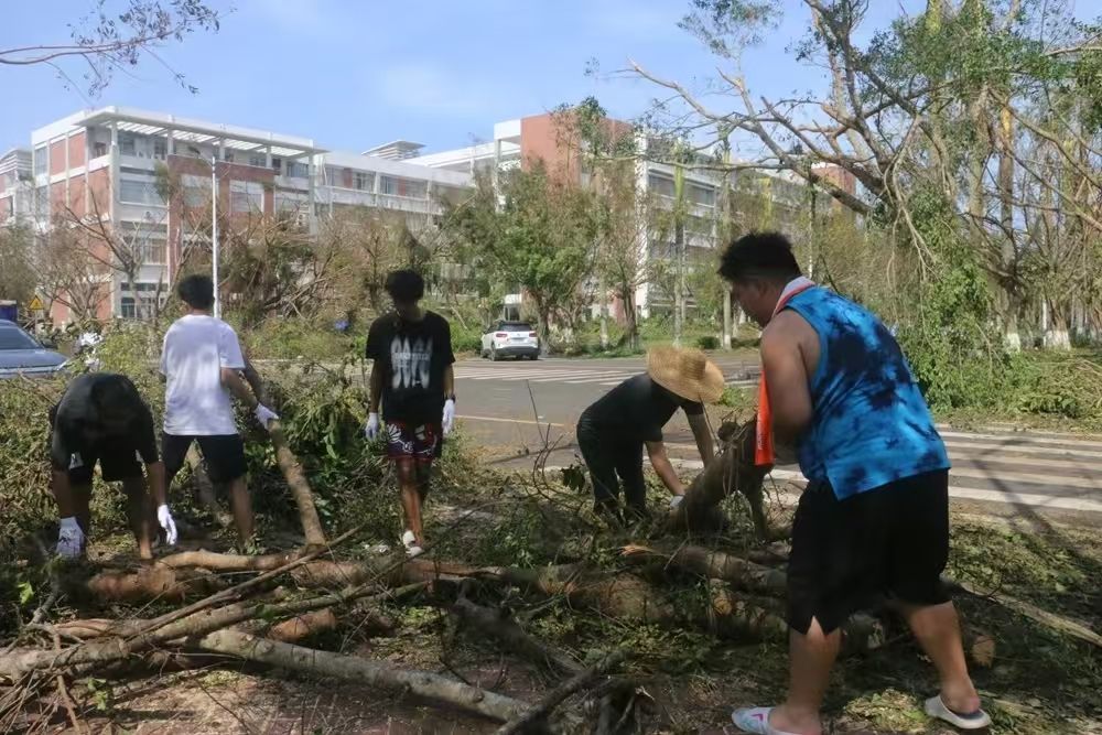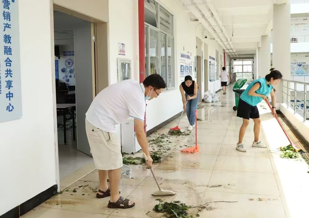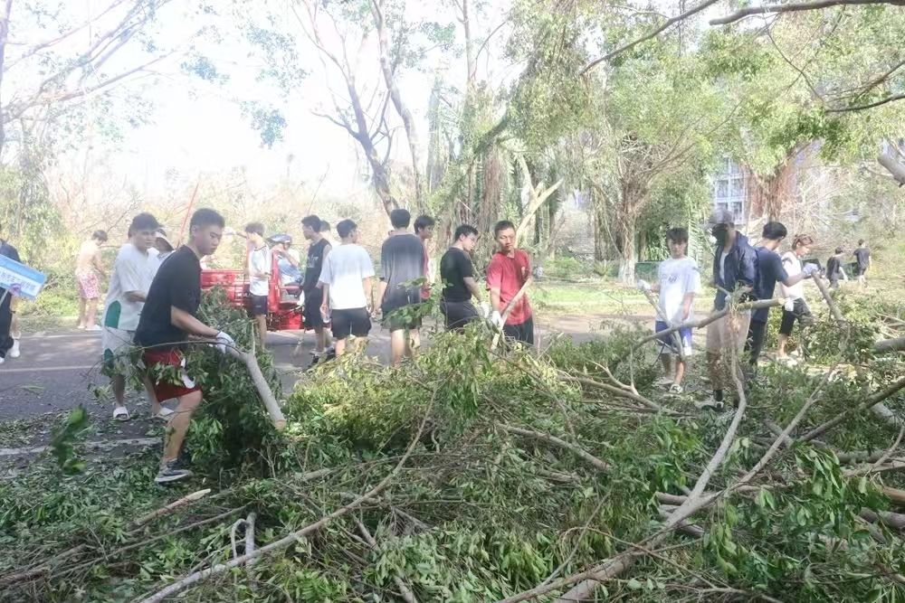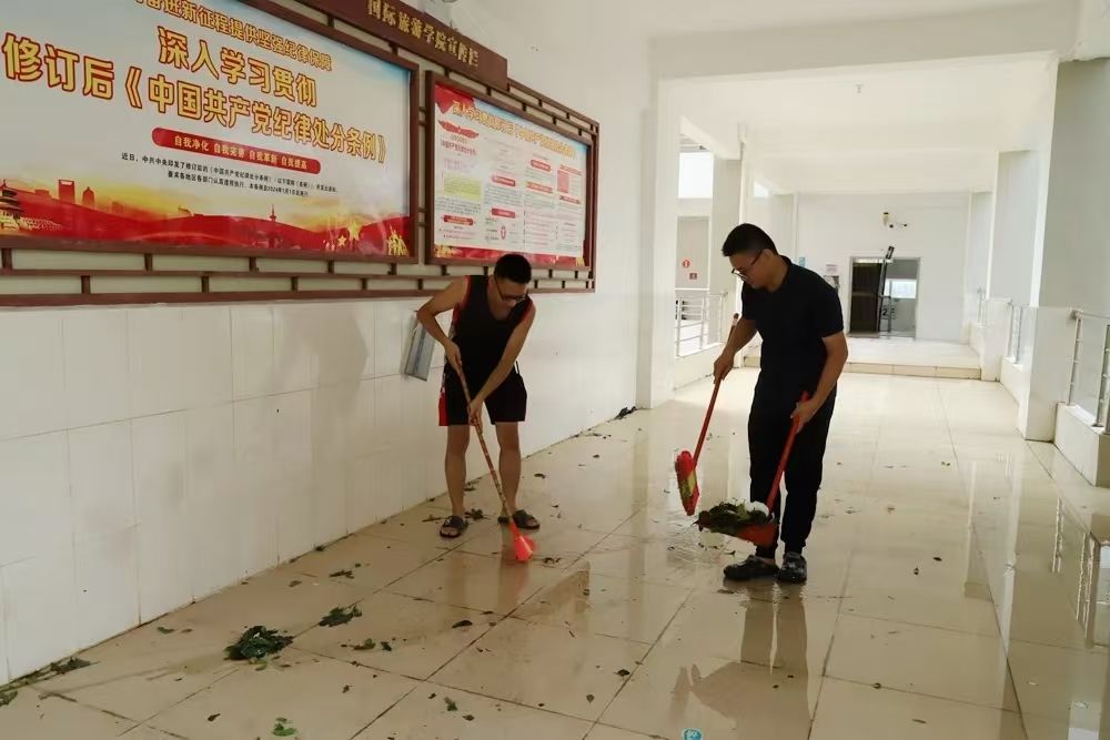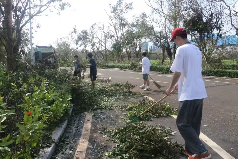 对伏倒树木、路面积水、残枝败叶等垃圾进行全面清扫清运