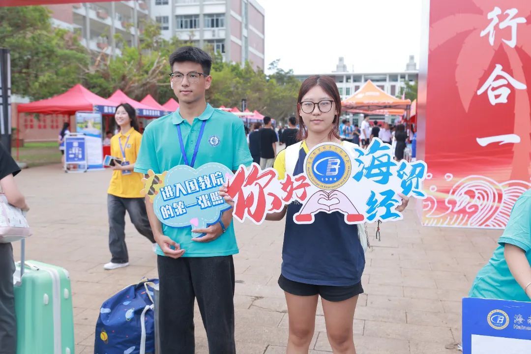在新生报到前夕,海南遭受了超强台风“摩羯”的侵袭。海经贸师生守望相助、众志成城,经过连日紧张的灾后恢复重建,学校已恢复基本生活学习秩序。报到当天,秋风送爽,彩旗飘扬,迎新拱门焕新夺目,全校上下竭尽全力,共同为新生们营造温馨喜庆的氛围,提供细致入微的服务,确保每位新生都能顺利开启大学新篇章。