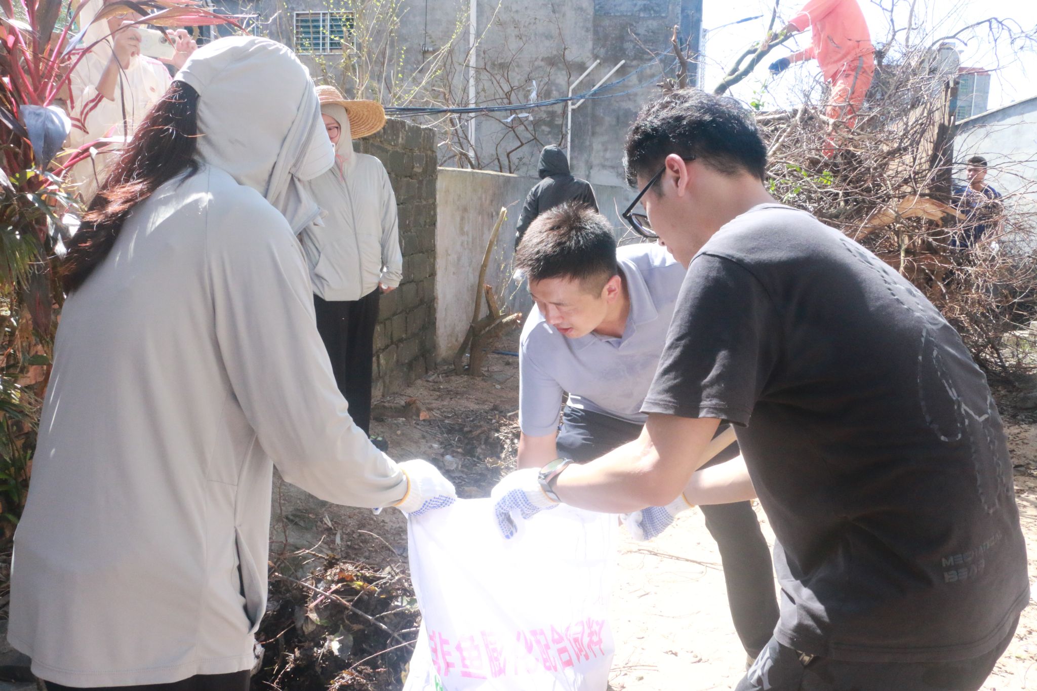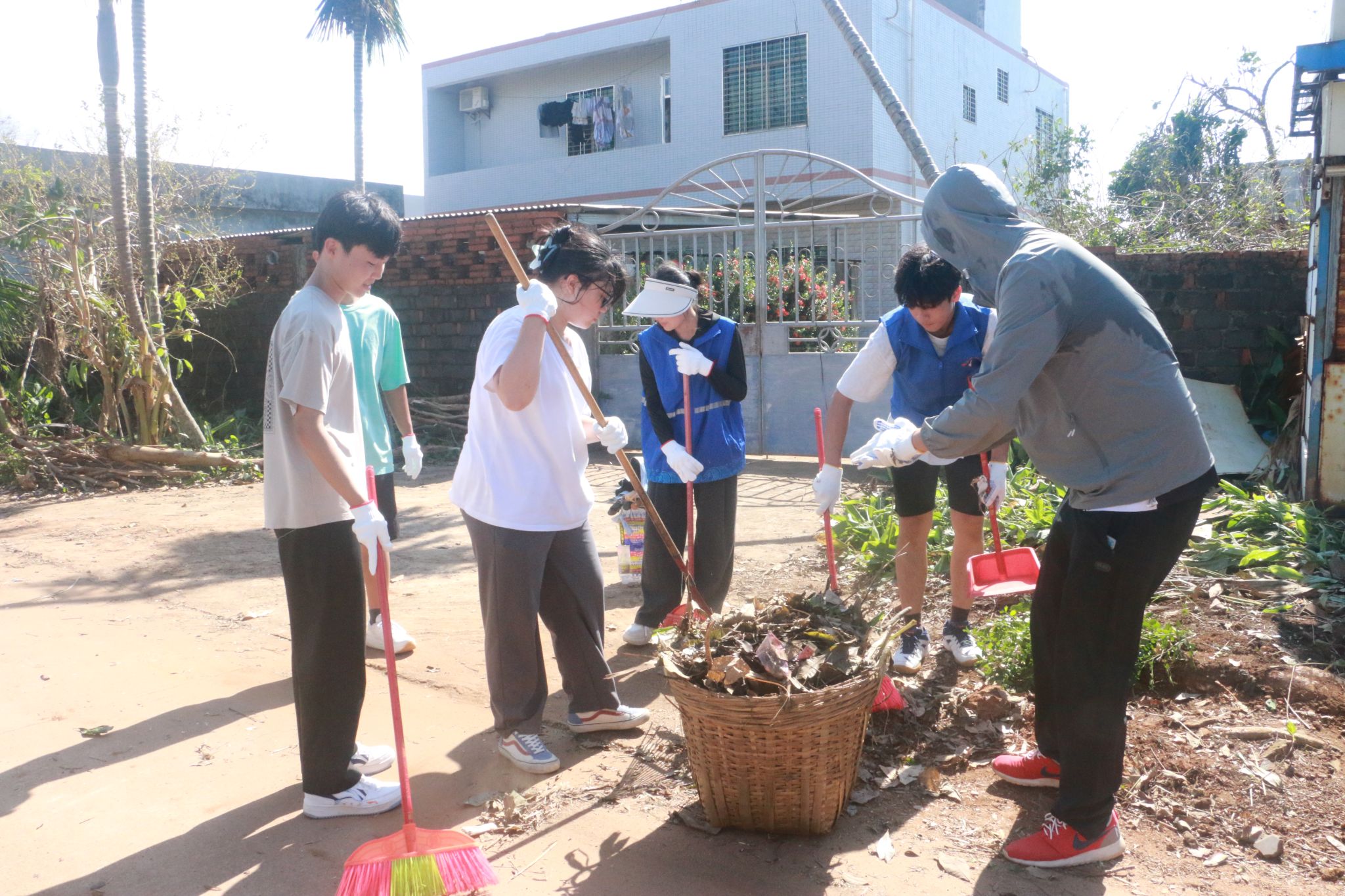 风雨同舟,患难与共。教师和学生志愿者们兵分三路,干劲十足,积极行动,手持扫帚、铲子、垃圾袋等清洁工具,对社区内的街头巷道及房前屋后的垃圾、断枝残叶等进行清理,使社区周边环境卫生焕然一新,用实际行动诠释了“奉献、友爱、互助、进步”的志愿者精神,为社区加速恢复正常生产生活秩序贡献海经贸力量。