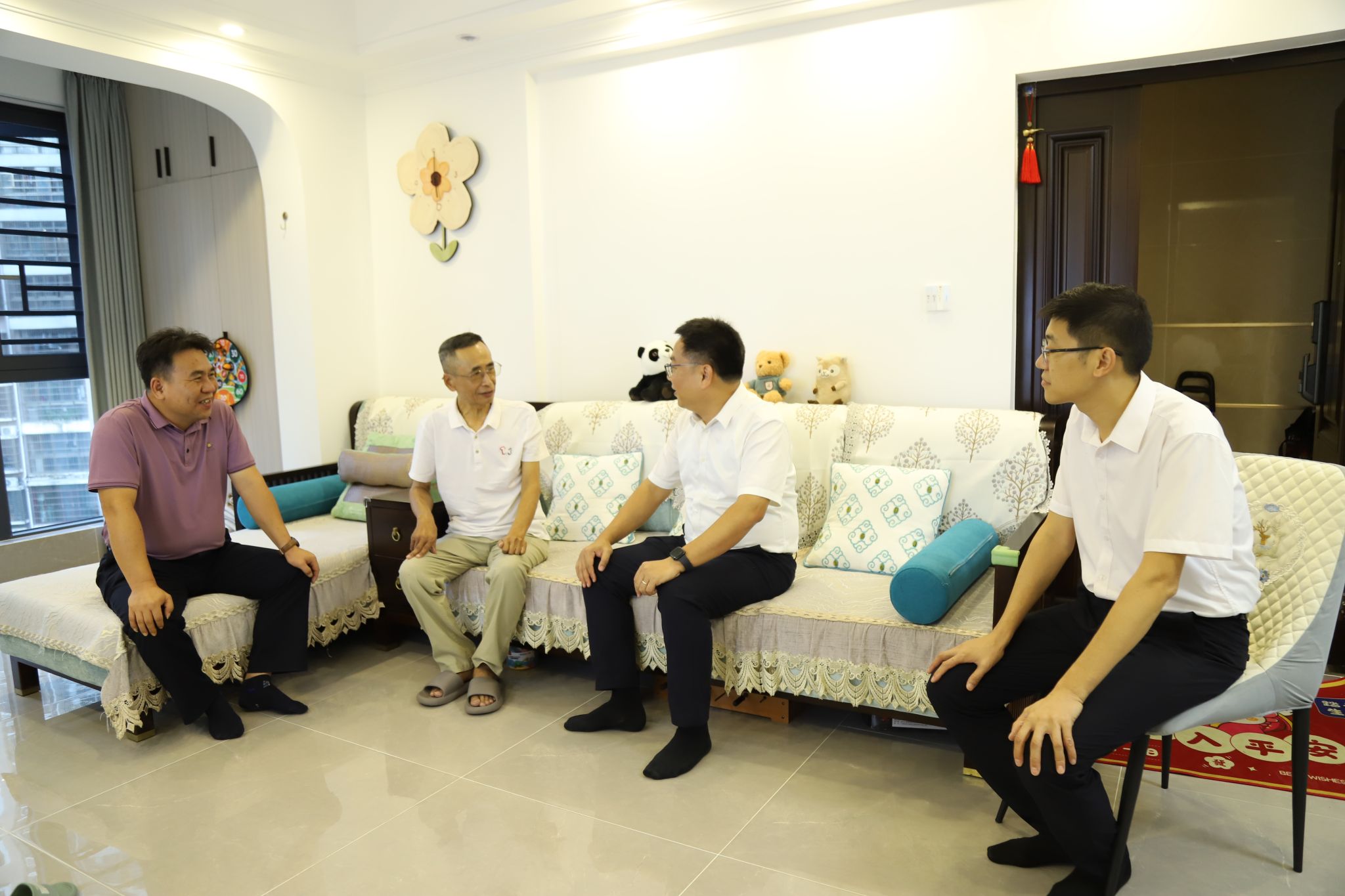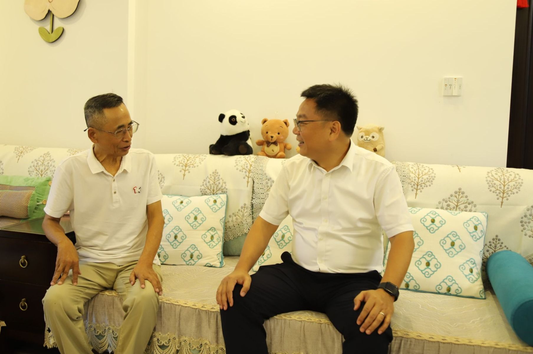 2024年9月25日,beat365vip官网登录入口党委书记王华来到退休教师周国耀教授家中,为他送去学校党委的深切关怀和国庆节日的美好祝福。 党委委员田小林陪同慰问。
