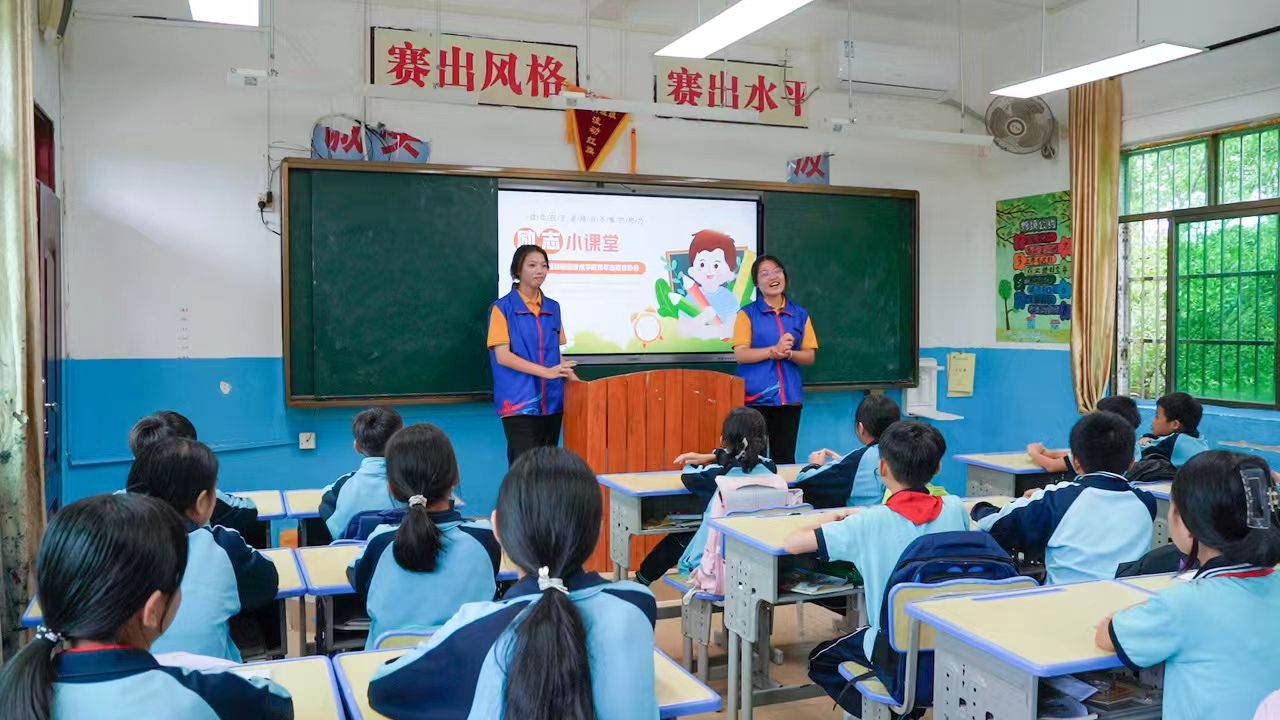 海经贸青年志愿者举办心理健康、励志教育微讲堂,结合自身经历和所学知识,用通俗易懂的语言,从情绪管理、人际交往、压力应对等方面进行讲解,帮助水头小学的同学们掌握心理调适的方法,增强心理素质。他们还结合当前热点,分享优秀榜样的事迹,鼓励同学们树立远大理想,勇敢面对困难和挑战,培养家国情怀。随后,青年志愿者与学生们开展一系列寓教于乐的课外互动游戏。