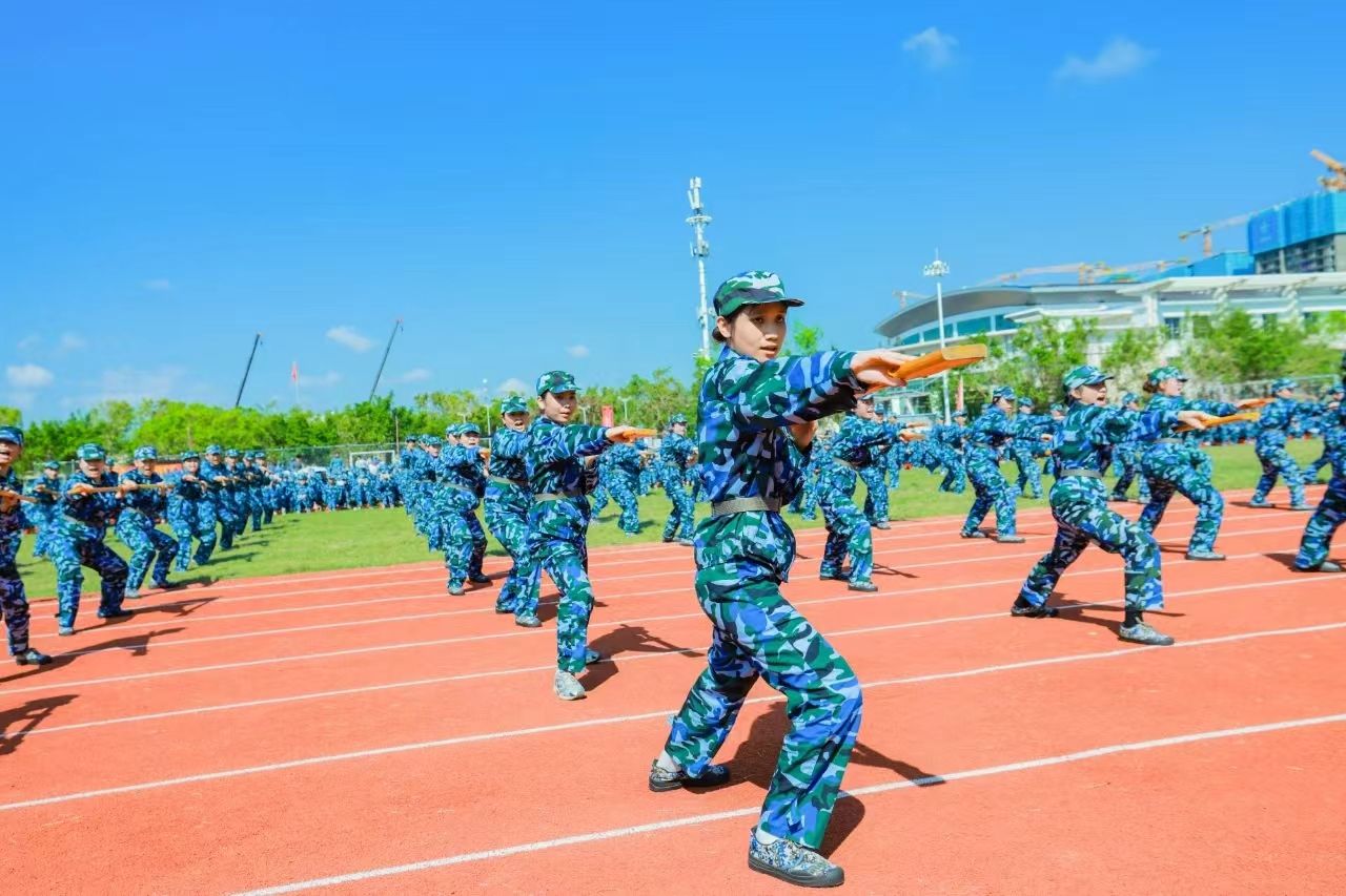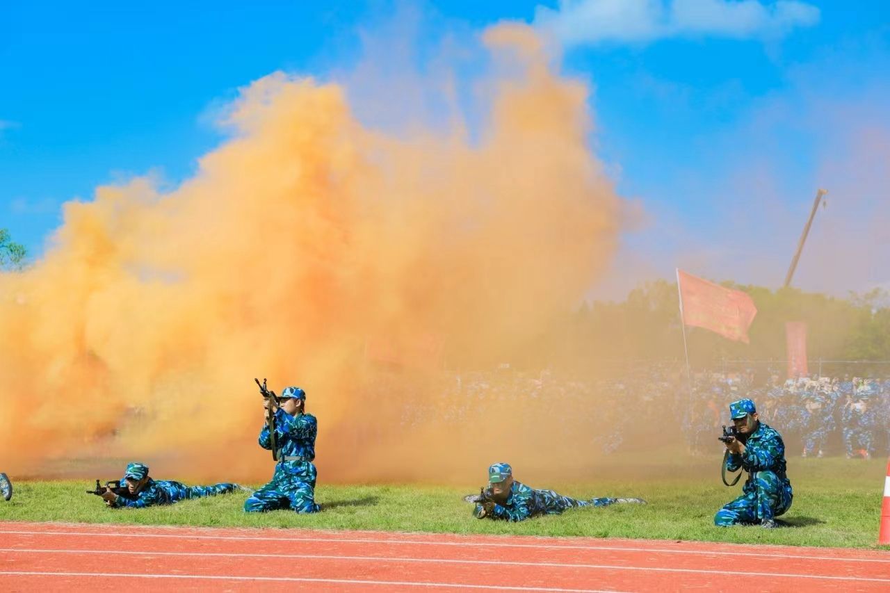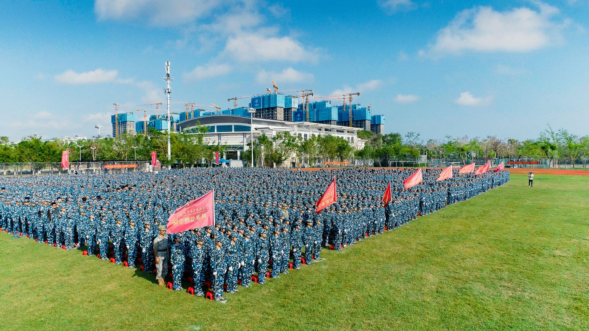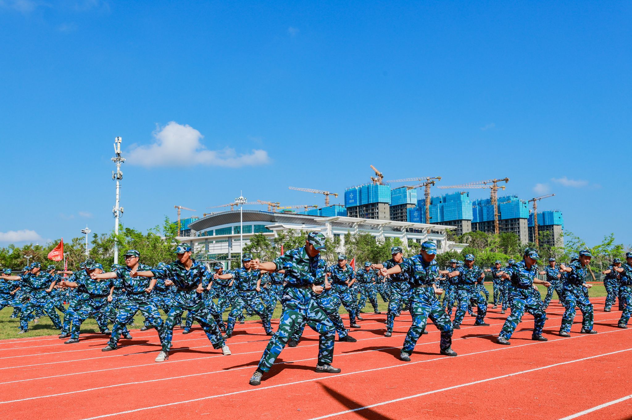 崔昌华向全体新同学表示热烈欢迎,向辛勤付出的承训教官及教职员工致以崇高敬意和诚挚感谢。他说,台风“摩羯”给学校带来了严重破坏,但全体海经贸人众志成城、共克时艰,以团结的意志和坚毅的品格克服重重苦难,实现如期迎新、按时复学,这些精神财富是送给新生们最宝贵的“开学礼物”。他回顾了海经贸的建校历史和近年来取得的成绩,希望同学们把青春的热忱倾注到今天,在蓬勃发展的海经贸堂堂正正地成长成才。他深情寄语新生,一要挺膺担当,立稳报国强国的“鸿鹄志”。牢固树立起为祖国、为人民奋斗奉献的崇高志向,让青春年华在中华民族伟大复兴的新征程上焕发更加绚丽的光彩。二要拥抱理想,敢做仰望星空的“追梦人”。不自我怀疑、不轻易言弃,相信“相信”的力量,在追逐梦想的过程中,发现人生最美的风景。三要追求卓越,当好脚踏实地的“奋斗者”。保持独立思考,扎稳立身立业之根,练就过硬本领,为未来的发展创造更大空间。四要砥砺身心,成为全面发展的“栋梁材”。明天是中华人民共和国七十五周年华诞,我们要感谢先辈们创造的美好生活,增强忧患意识,提高政治觉悟,继续发扬军训培塑起来的良好作风,真正成为德智体美劳全面发展的社会主义建设者和接班人。