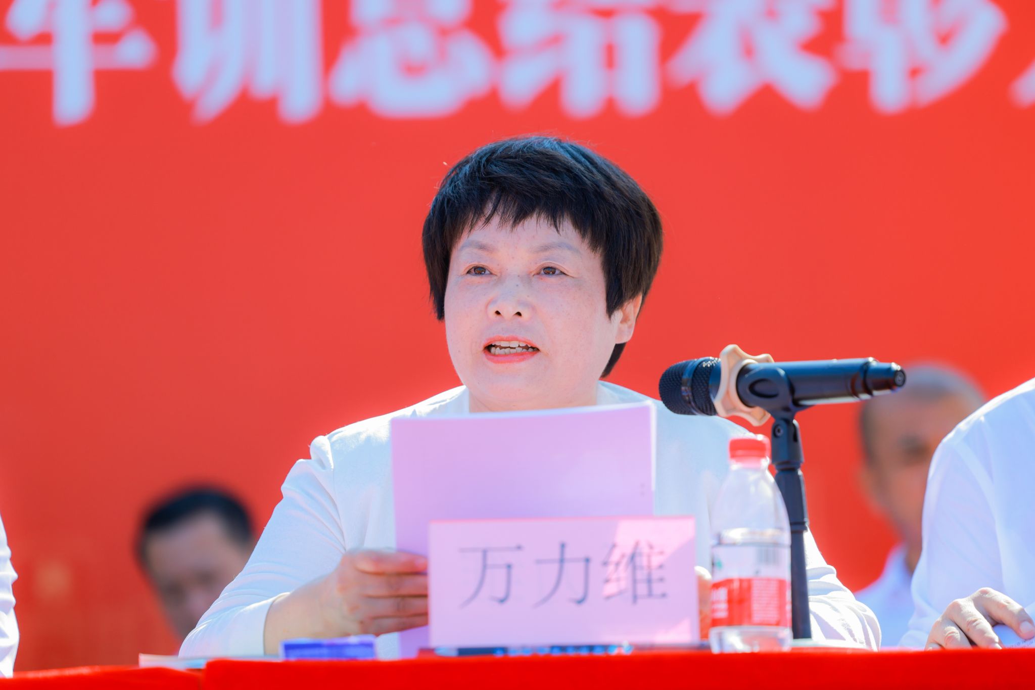 王华代表学校向承训单位赠送“劲旅展雄风铸英才淬炼成钢、军人彰本色育学子逐梦启航”锦旗,感谢教官们给予学生的军训帮扶、悉心指导和榜样示范。