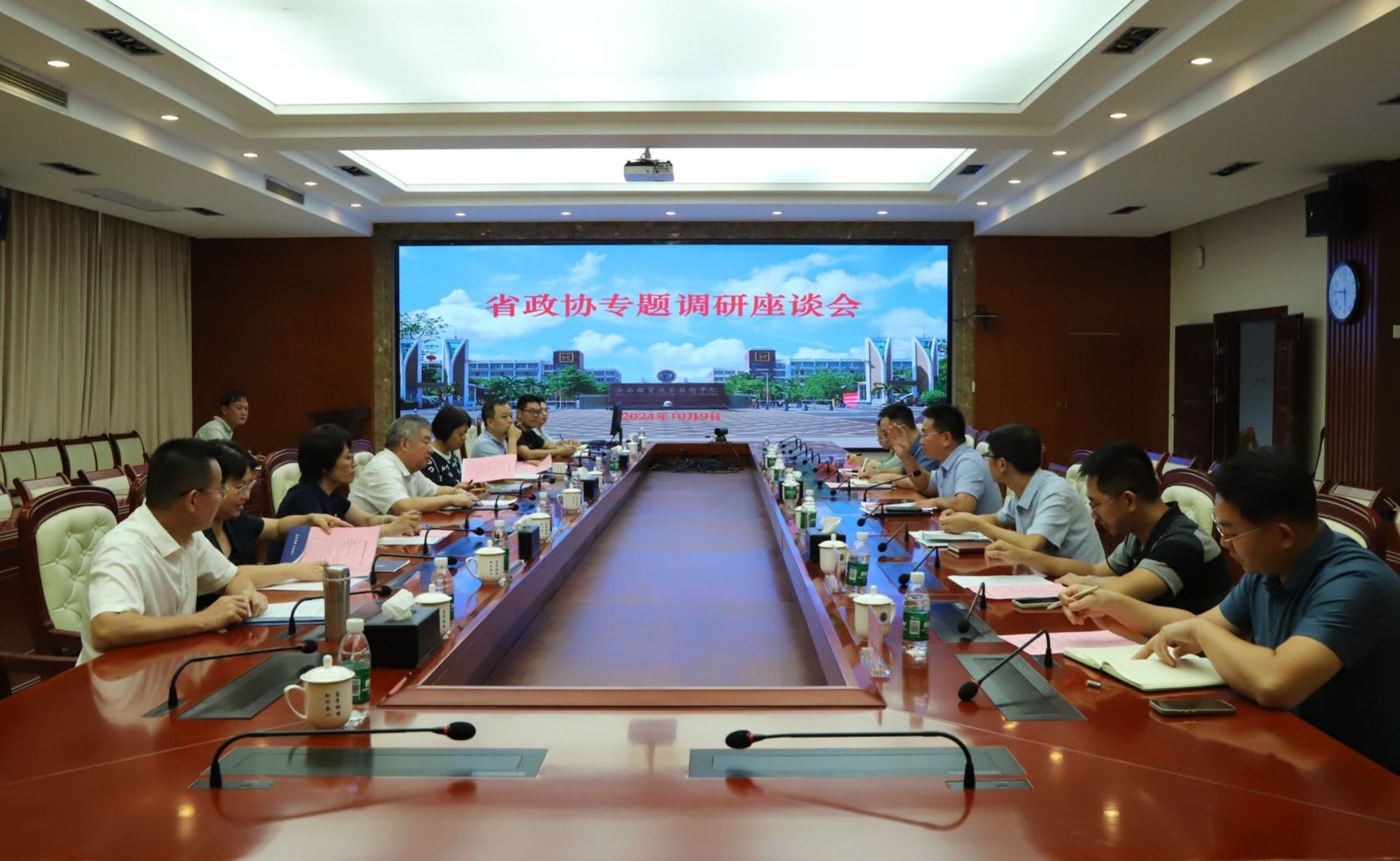 2024年10月9日,省政协党组成员、秘书长、机关党组书记罗时祥一行8人来到beat365vip官网登录入口,就学校推动职业教育高质量发展情况进行调研指导。学校党委副书记、校长崔昌华,党委委员田小林出席会议。