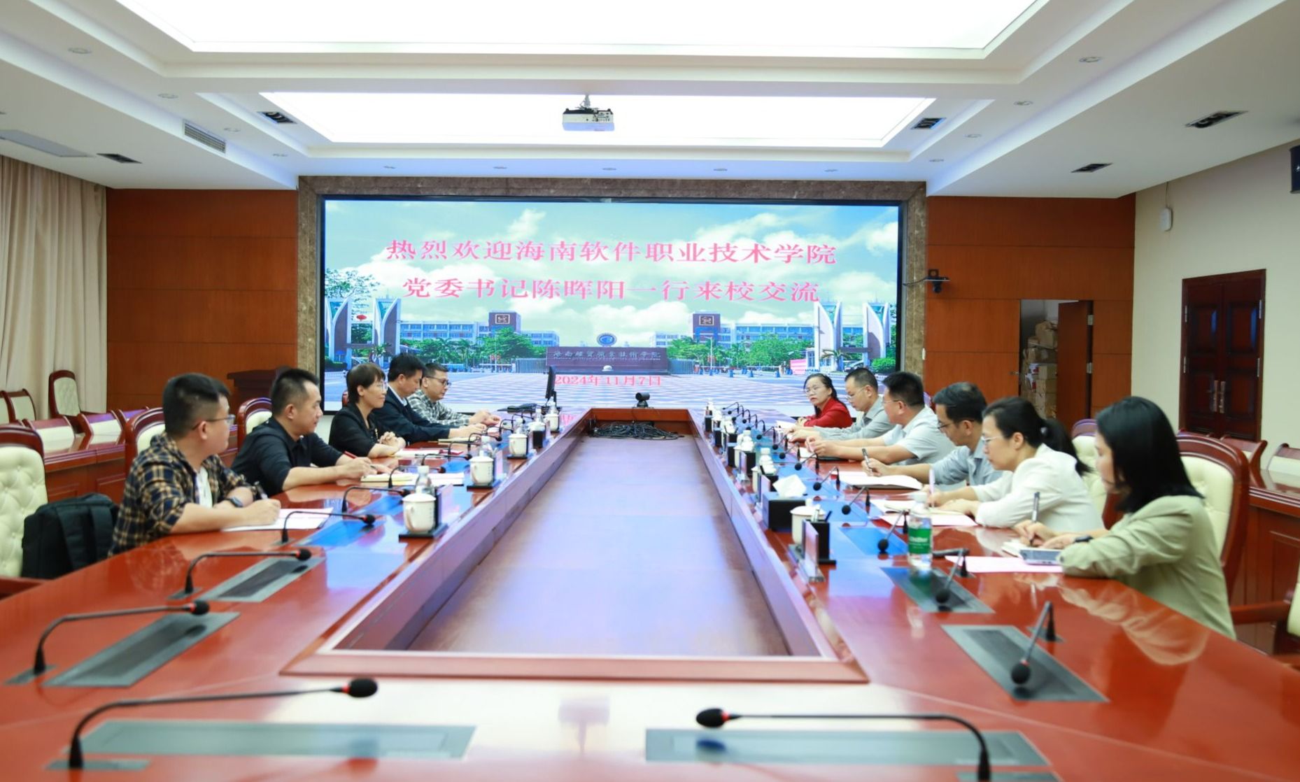 2024年11月7日,海南软件职业技术学院党委书记陈晖阳一行5人来到beat365vip官网登录入口,就创新创业团队建设及就业创业工作等方面进行交流座谈。学校党委副书记、校长崔昌华出席会议。