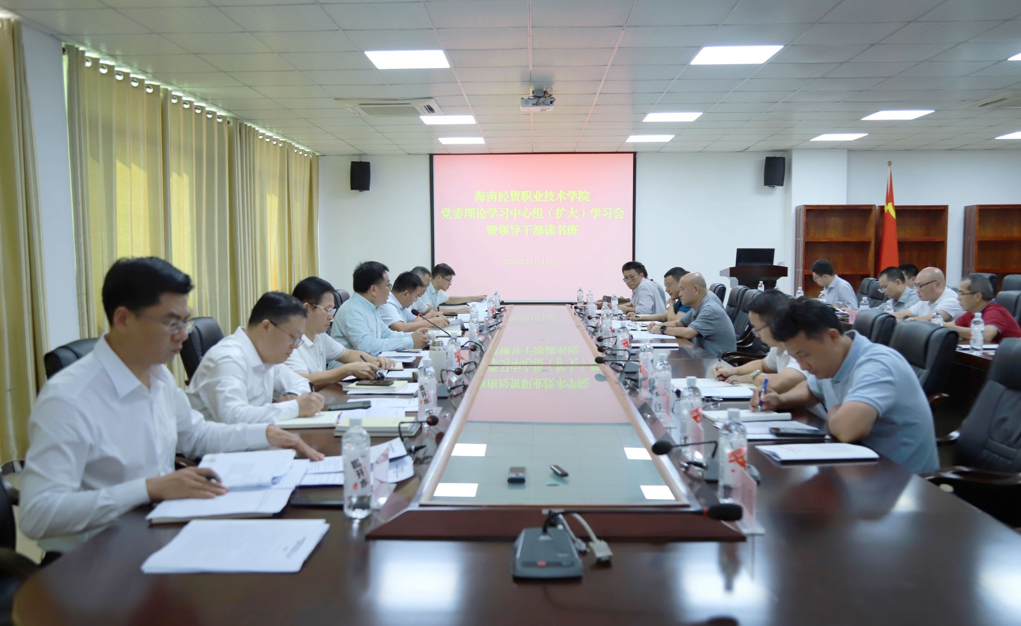 崔昌华领学《论教育》“加快构建现代职业教育体系”篇章有关内容。他说,一要直面过去谋未来。认真回顾总结海经贸筚路蓝缕、艰苦创业的办学历程,立足新时代职业教育的发展,提高紧迫感、危机感,积极谋划好新一轮“双高”建设和职业本科大学申办工作。二要抓住机遇敢挑战。迎难而上,敢啃“硬骨头”,以“钉钉子”精神努力推动实现学校改革发展目标。三要力戒空谈重实干。增强责任感、使命感,把学习成果转化为推动学校发展的实际成效。他强调,要聚焦立德树人根本任务,强化实践育人,提高教育教学质量;要深化教育教学改革,用数字化赋能职业教育,真正培养社会需要、海南自由贸易港建设需要的人才;要强化师资队伍建设,加强教师培训,关心新入职教师发展,优化职称评审,切实保障教师权益;要加强师德师风建设,将教育家精神深植于全体教师的思想观念与日常行动之中,更好地服务学生成长成才。