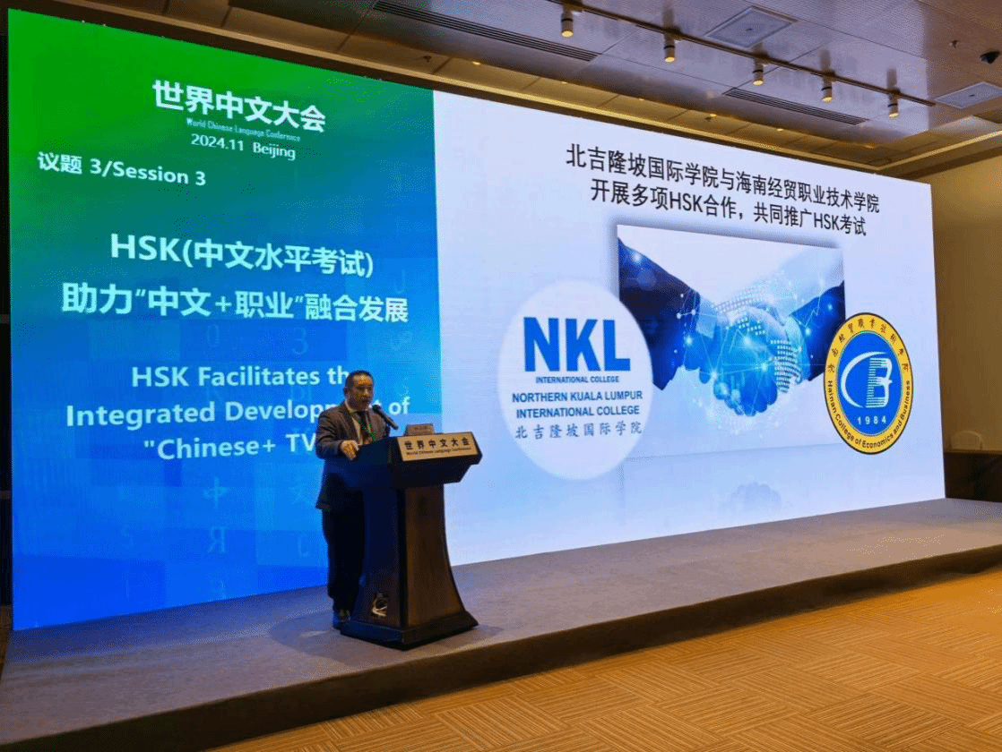 11月15日-17日,由中国教育部主办的2024世界中文大会在北京召开。在11月15日举办的大会分会——中文水平考试(HSK)全球合作伙伴会议上,beat365vip官网登录入口与马来西亚北吉隆坡国际学院联合成立的中文学习测试中心荣获2024年“HSK中文+职业技能优秀合作伙伴”称号。