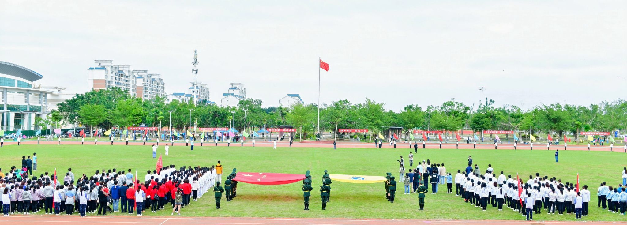 全校师生员工10000余人参加运动会开幕式。
