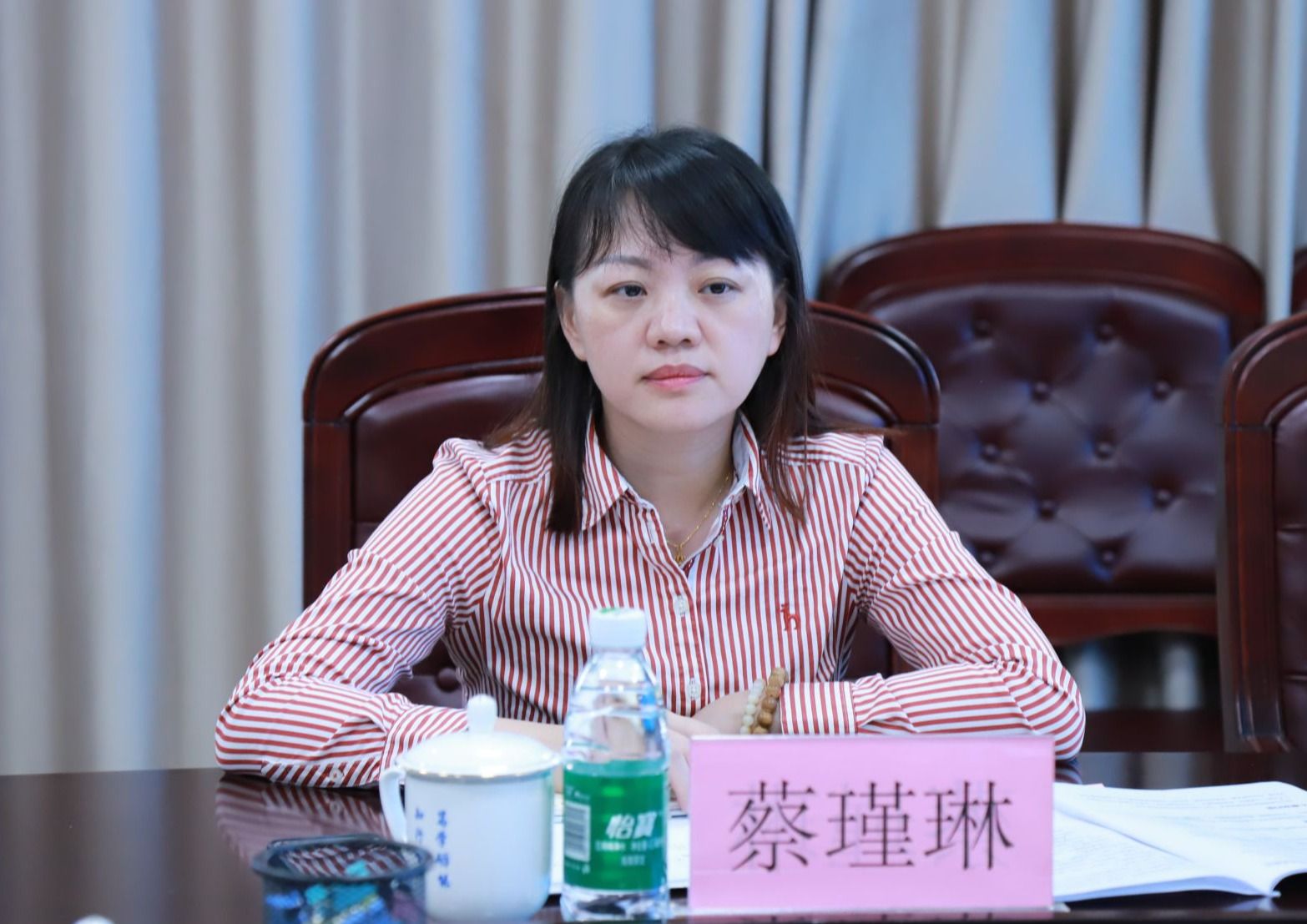 蔡瑾琳介绍了银校合作项目和综合服务优势,并表示愿意根据学校各项工作需求,研究适合学校的方案并提供针对性地服务。她希望在校园一卡通建设、党建共建、“智慧书店”、金融服务等多领域开展深度合作,携手打造更高层面、更宽范围、更深层次的银校合作模式。