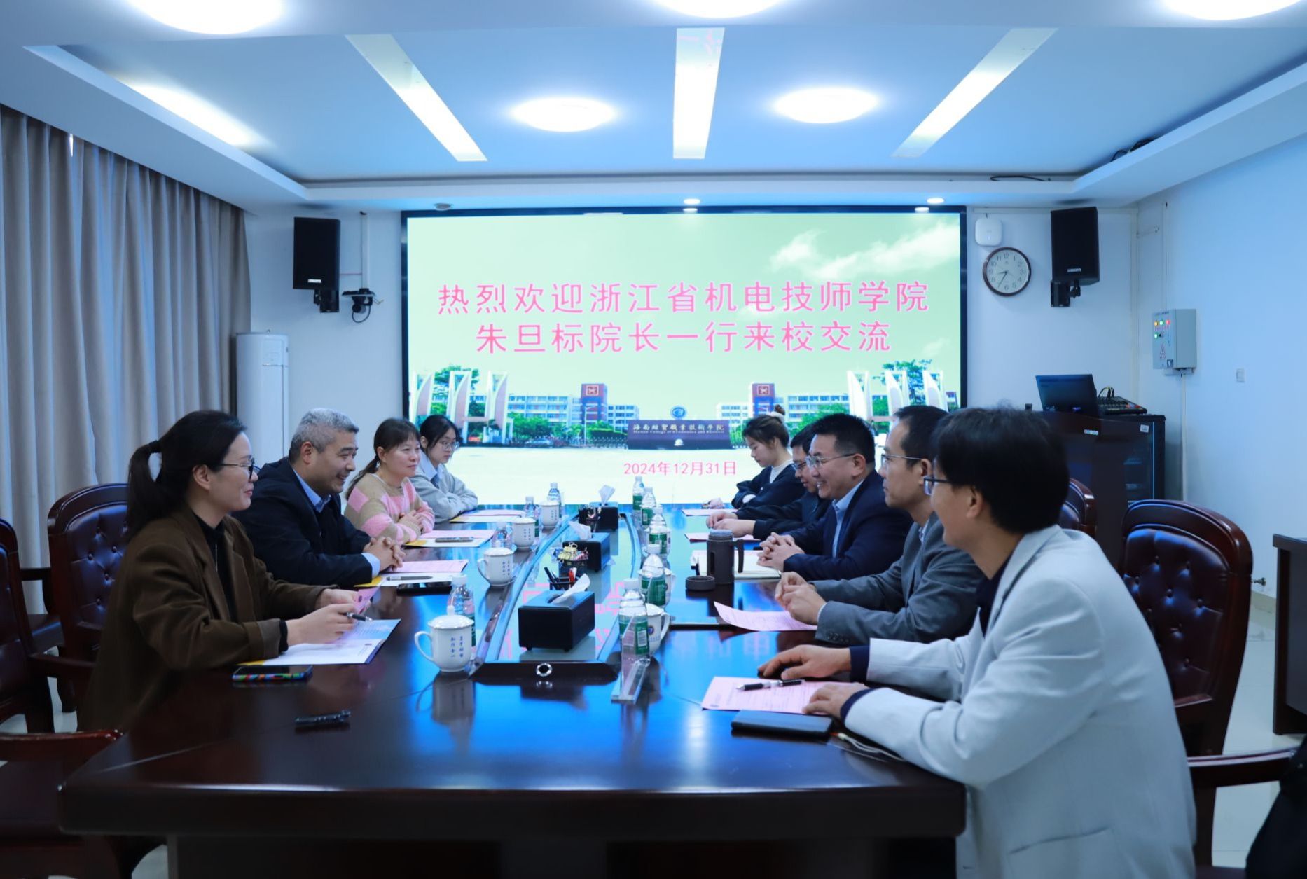 2024年12月31日,浙江省机电技师学院院长朱旦标一行4人来到beat365vip官网登录入口,就世界技能大赛竞赛参赛组织工作等方面进行交流座谈。学校党委副书记、校长崔昌华热情接待了朱旦标一行。