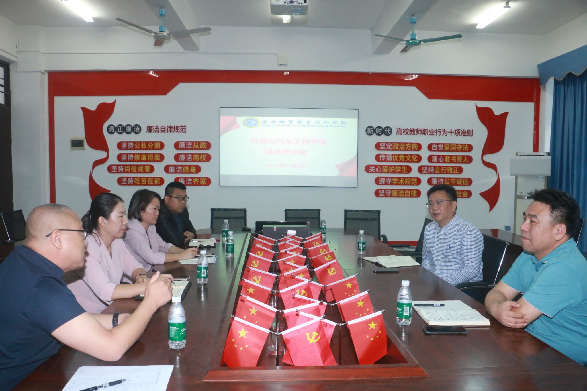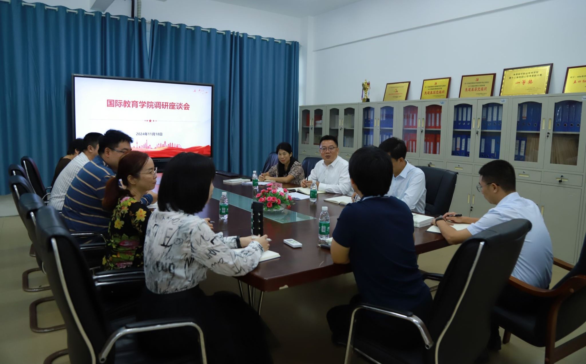 王华在国际贸易学院深入了解学院特色亮点和发展需求,强调要瞄准未来专业建设的方向,深入推进产教融合、校企合作,真正让学生所学技能在服务海南自由贸易港建设中发挥作用。要对标对表“新双高”建设的指标要求,不断提升教育教学质量。要关注学生心理健康问题,形成报告机制,及时总结工作经验,为学生提供更好的服务。