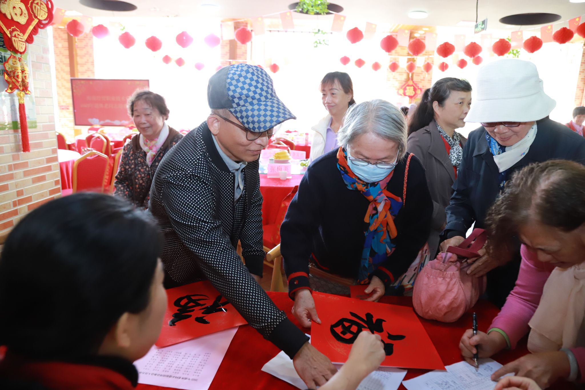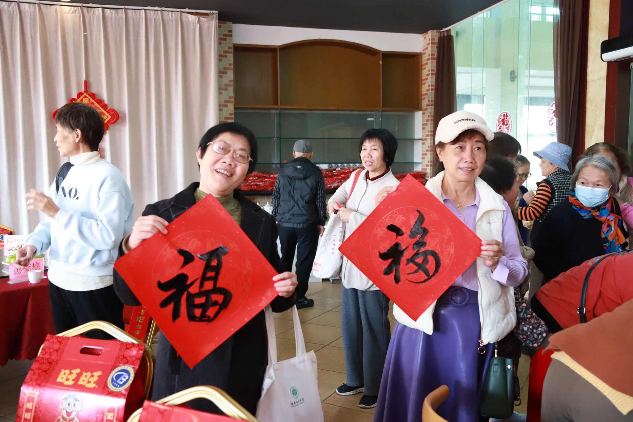 品美食、写“福”字、送对联……团拜会现场气氛热烈,充满了欢声笑语。老同志们集体观看了学校宣传片,深刻感悟学校在办学条件、人才培养、师资队伍、国际化办学等方面的成就。工作人员把退休老教师林长武教授现场写的“福”字送到每一位退休教师手中,学校还为大家准备了丰富的春节慰问品和美味的菜肴,感谢退休老教师们为学校发展所作出的贡献。