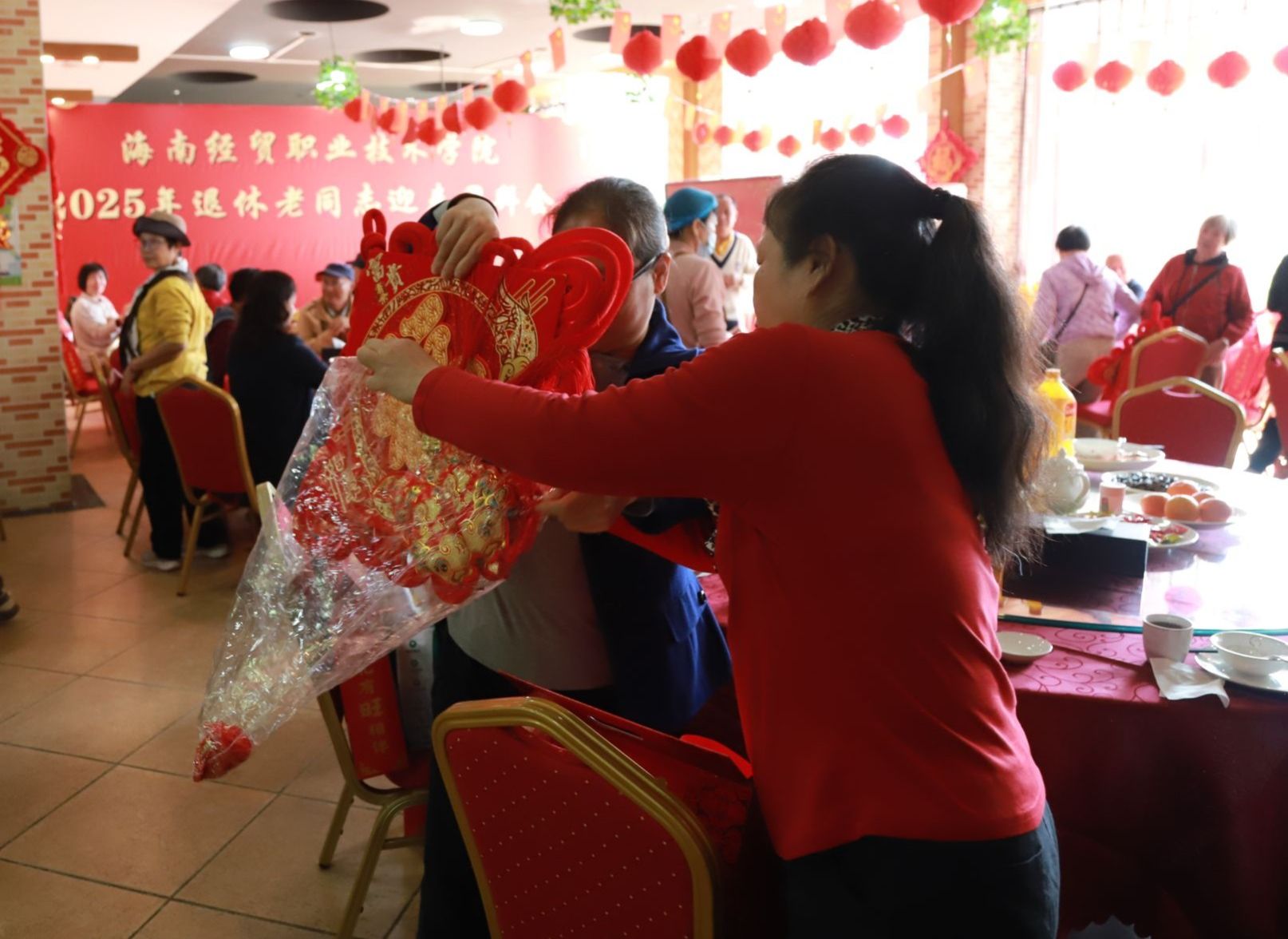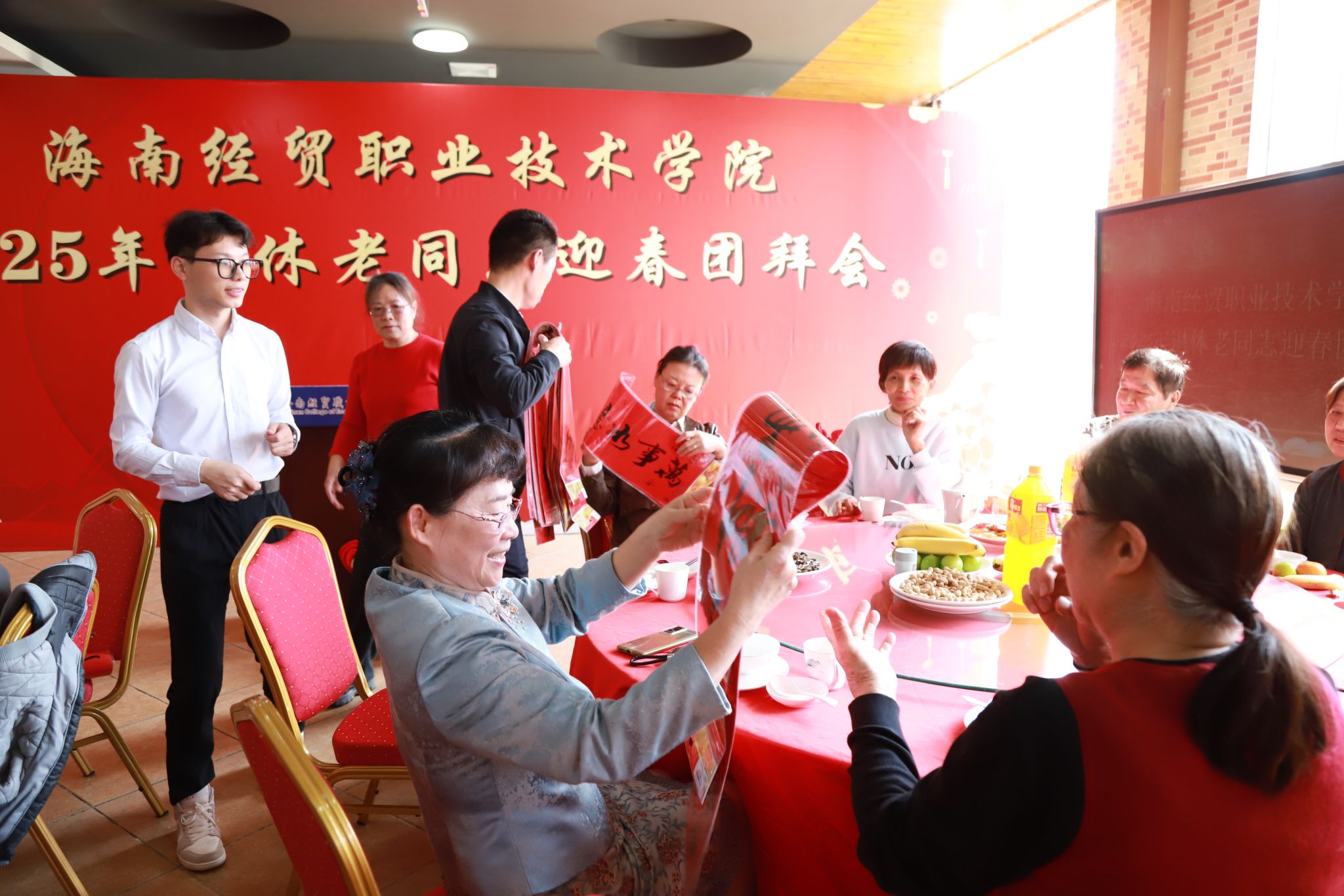 团拜会在欢快喜庆的乐曲和其乐融融的氛围中拉开帷幕。王华向全体退休老同志致以诚挚的问候和美好的祝福。他回顾了过去一年学校所取得的成绩,充分肯定了学校关工委继续发挥“银发”智慧所取得的优异成果。他说,树高千尺总有根,吃水不忘挖井人。学校各项事业的发展成果离不开在座老同志们的关心关注和鼎力支持。新的一年学校将以申报“新双高”和申办本科职业大学为主线,进一步凝心聚力、砥砺奋进,为早日建成具有国际影响力的中国特色高水平职业技术大学而不懈奋斗,为教育强国建设贡献海经贸力量。