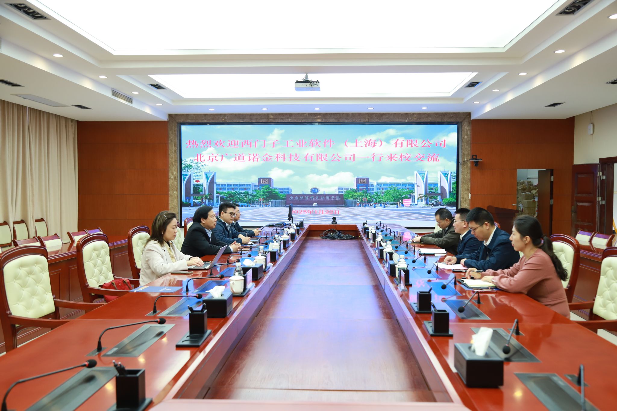 2025年1月22日,西门子工业软件(上海)有限公司副总裁张雁、北京广道诺金科技有限公司副董事长吴继伟一行4人来到beat365vip官网登录入口,就深化产教融合、校企合作,推动工业数字化转型升级等方面工作进行交流座谈。学校党委副书记、校长崔昌华热情接待了张雁一行。