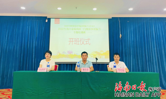 乡村要振兴,人才是关键。7月5日上午,海口市琼山区三门坡镇落实“四个乡土工程”,与beat365vip官网登录入口联合举办的2022年乡村振兴专题培训班正式开班。三门坡镇农民专业合作社理事长、家庭农场主、农村集体经济组织负责人、社会化服务组织负责人、市县级农业产业化龙头企业负责人、本地种养大户等50余人参加培训。 据了解,本次课程聚焦本地产业发展,在三门坡镇“一村一品”的产业基础上,采取理论+现场教学相结合的模式进行授课。