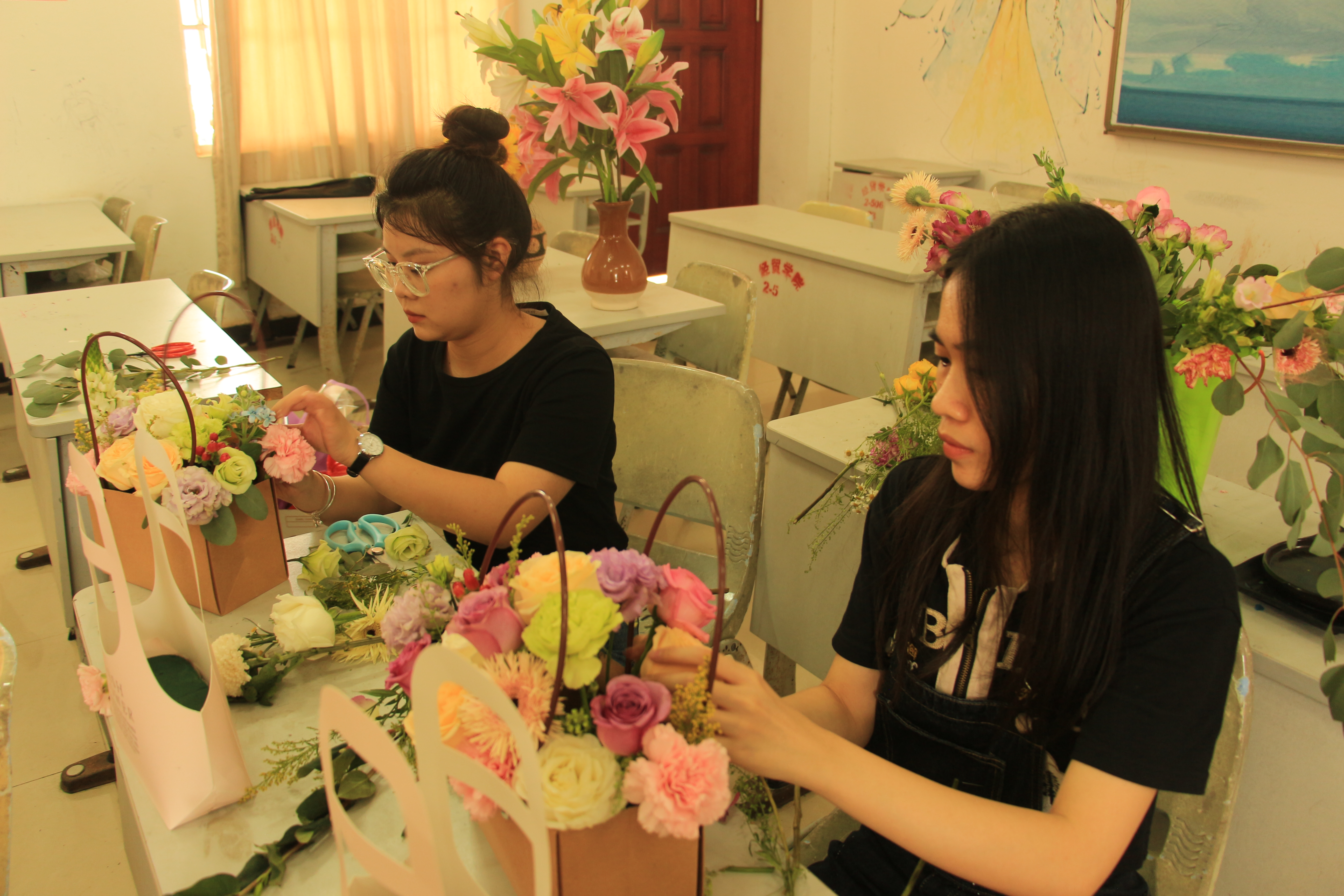 一把剪刀,一张红纸,巧手翻飞中,一幅幅精剪细琢、饱含寓意的剪纸作品从该校人文艺术学院师生们的手里诞生;蔬菜加饭团,用海苔一裹一捏,美味的寿司就摆在该校国际旅游学院师生们的面前。