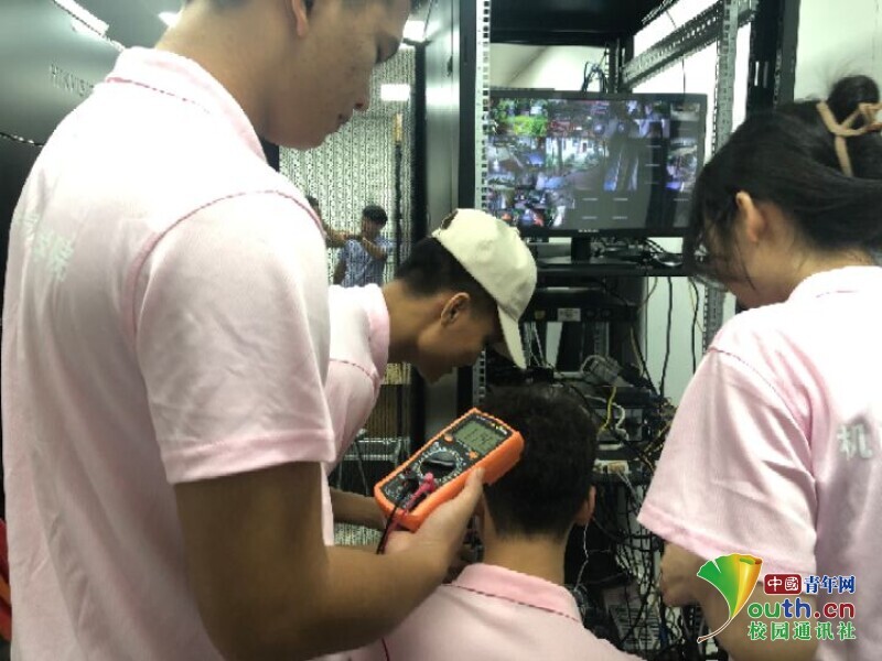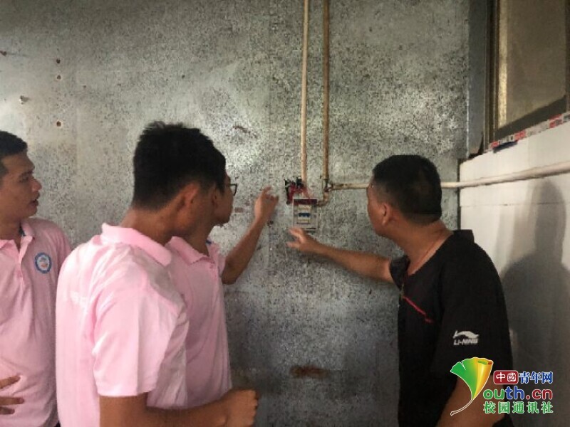 图为实践队员正在检修电路。中国青年网通讯员 黄彩凤 供图。