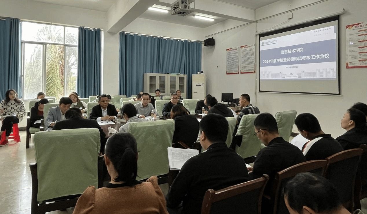 2025年3月11日,信息技术学院召开2024年度考核暨师德师风考核工作会议,通过述职评议、民主测评及工作部署,全面总结去年工作成效,明确新阶段发展任务,为学院高质量发展注入动力。