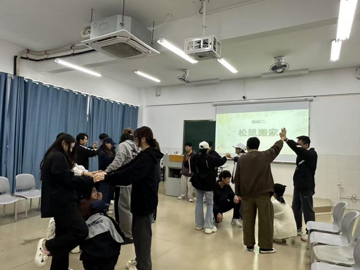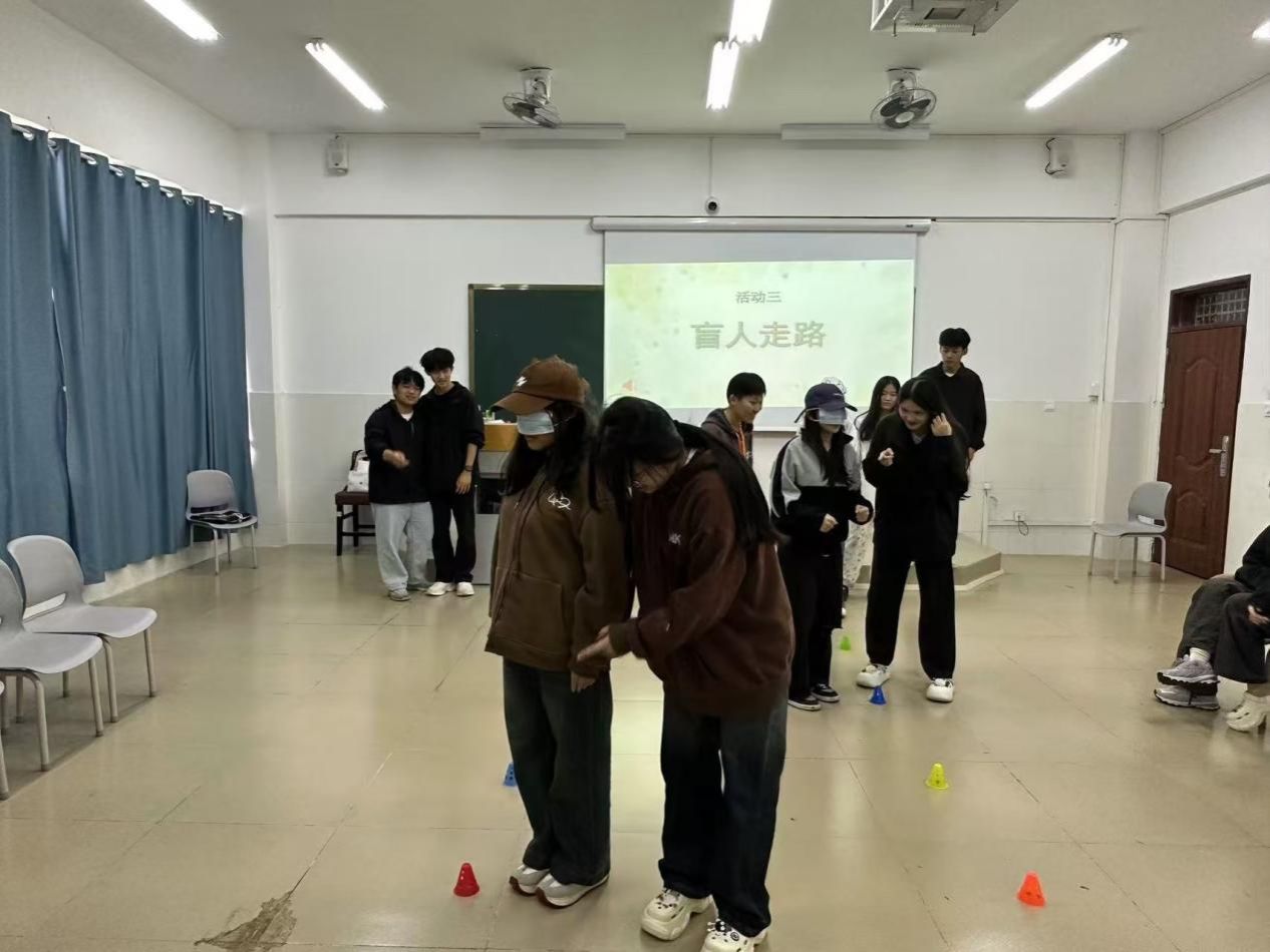 通过“一元五角”“松鼠搬家”“盲人走路”三个趣味游戏,同学们快速熟悉彼此,打破了拘谨的氛围。在团队协作中,同学们拉近距离,增进了解,在欢声笑语中放松身心,缓解了日常学习的紧张情绪,体验集体活动的乐趣。