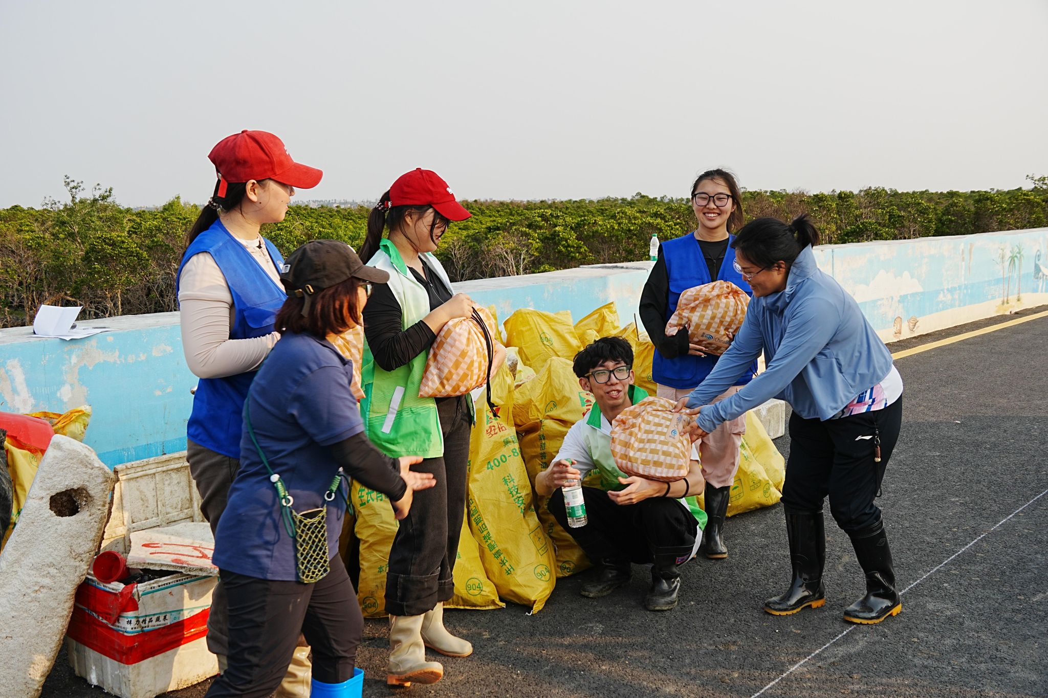 此次志愿活动共清理垃圾285.36公斤,有效改善了北港村红树林沿岸的生态环境,为沿海生物提供了更加宜居的栖息环境。于伊帆同学带领的第一小组表现优异,捡拾垃圾76.57公斤,荣获第一名。通过趣味对抗,志愿者们的环保意识、责任意识和奉献意识显著增强,大家纷纷表示要争当生态文明理念的传播者和践行者,为美丽中国建设贡献青春力量。
