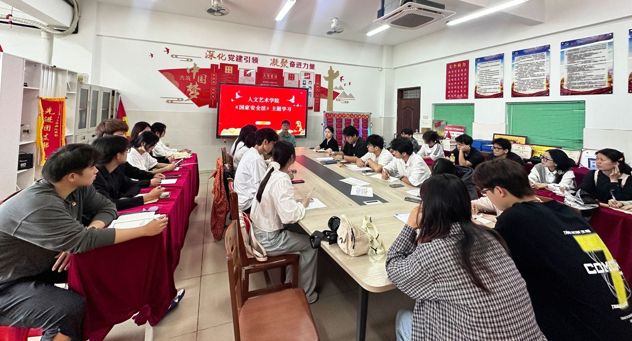 在全民国家安全教育日来临之际,为进一步增强师生国家安全意识,营造维护国家安全的浓厚氛围,在人文艺术学院党总支的指导下,学院团总支于2025年4月10日组织开展《中华人民共和国国家安全法》主题学习活动,引导青年学生始终坚持总体国家安全观,将国家安全意识融入到日常学习、工作和生活中,积极传播国家安全知识,为维护国家安全贡献自己的青春力量。
