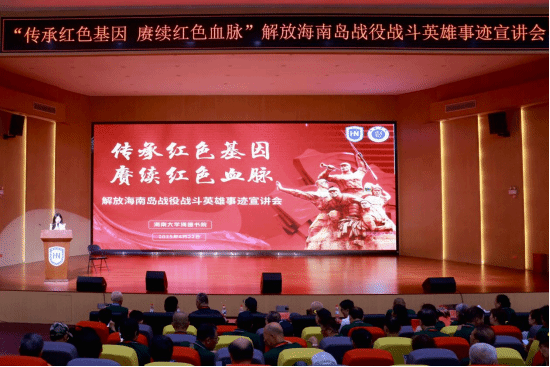 2025年4月22日,解放海南岛战役战斗英雄事迹宣讲会在海南大学举行。beat365vip官网登录入口关工委联合校团委组织学生代表到场聆听。
