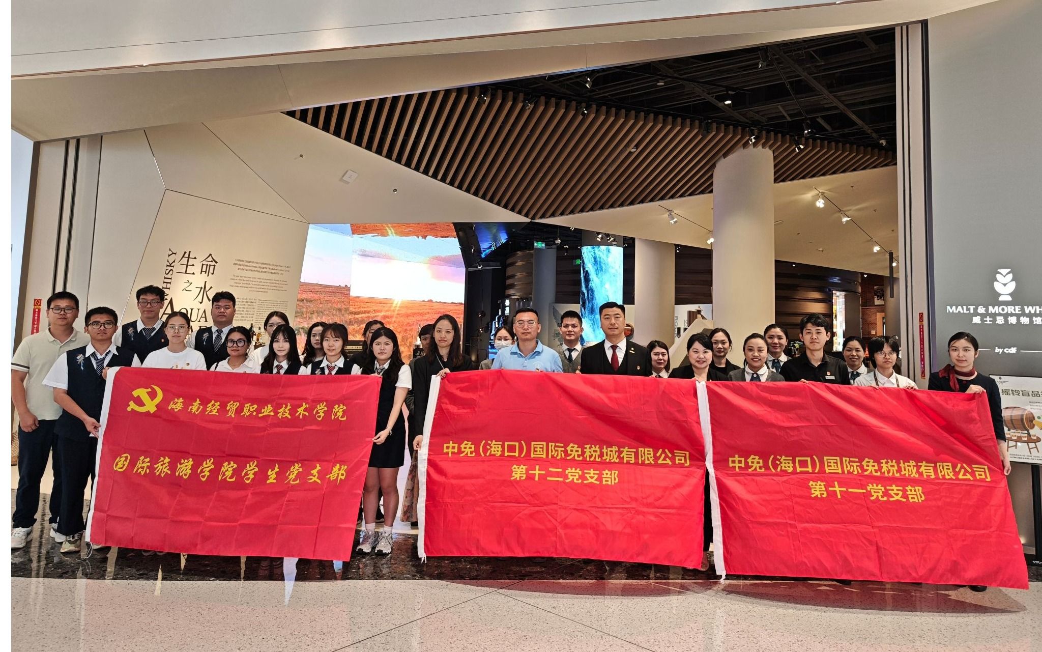 2025年4月22日 ,国际旅游学院学生党支部赴cdf海口国际免税城威士忌博物馆开展主题党日活动,通过沉浸式学习企业党建与酒水文化深度融合的创新实践,探索党建引领下文旅融合发展的新路径,感受免税政策利好与创新营销方式相结合带来的消费活力。