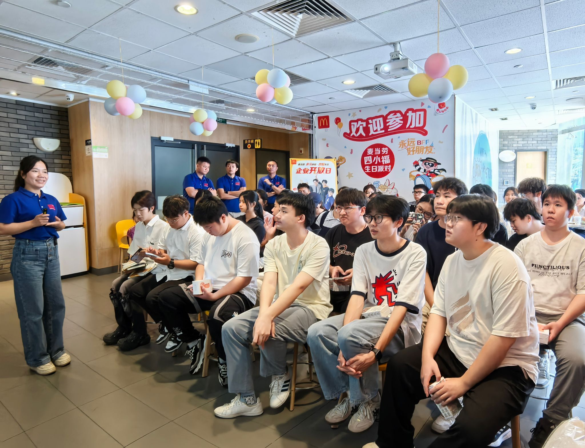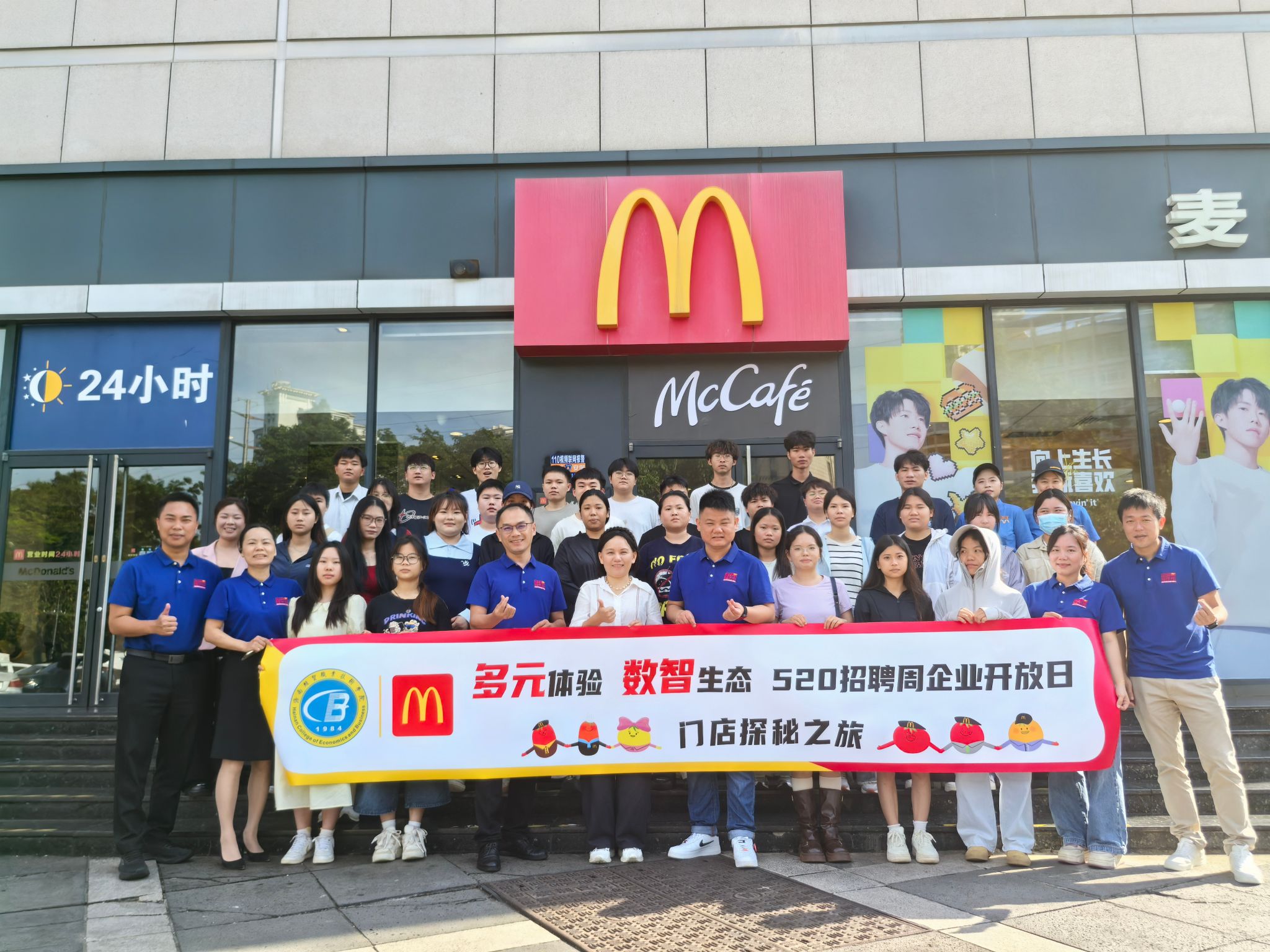 为深化产教融合、校企合作,提升学生专业素养与职业认知,2025年5月18日,国际贸易学院2023级连锁经营与管理专业全体学生在专业负责人黄琳老师的带领下,前往麦当劳紫荆百货店,开展“数字化餐饮探索与职业发展认知”企业开放日活动。