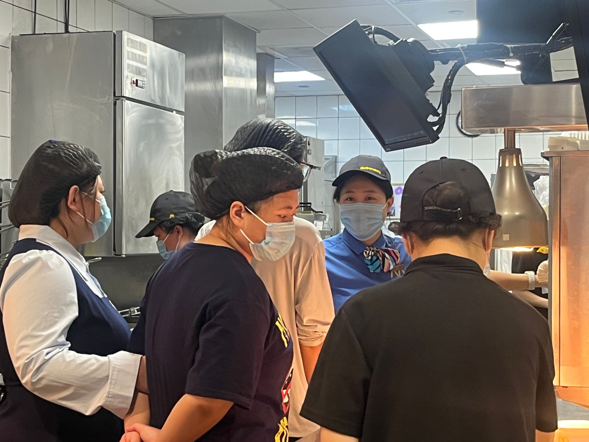 在“餐厅数字化探秘”环节,同学们分组前往门店前台、自助点餐区、厨房操作间进行实地参观。在工作人员的引导下,他们直观地感受到麦当劳数字化运营体系的高效运作。同学们还亲自模拟了一份订单的生成、处理与出餐全流程,深刻理解企业前后端协同工作机制的重要性。