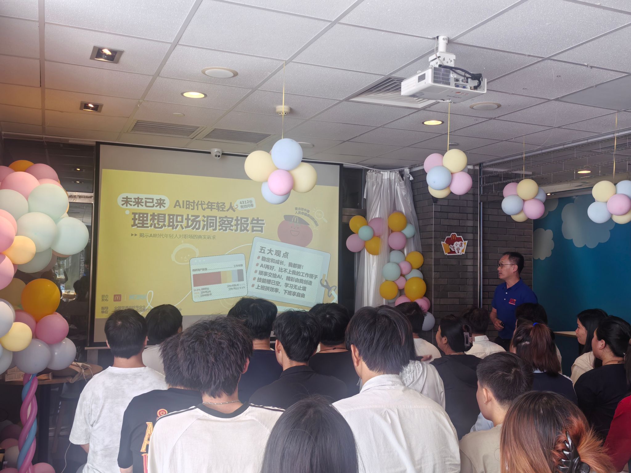 本次活动由国际贸易学院与麦当劳企业团队共同策划组织。在麦当劳紫荆百货店,同学们聆听企业相关负责人介绍企业文化与人才理念,了解当前餐饮行业对复合型人才的要求以及麦当劳岗位培训体系、职业发展路径与薪酬福利政策。