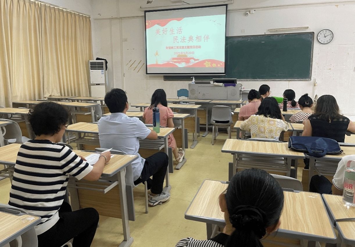 2025年5月20日,财务管理学院教工党支部组织全体党员开展“美好生活 民法典相伴”主题党日活动,深入学习贯彻《中华人民共和国民法典》,增强教师党员法治意识,扎实做好“党建+普法宣传”,推动法治校园建设。