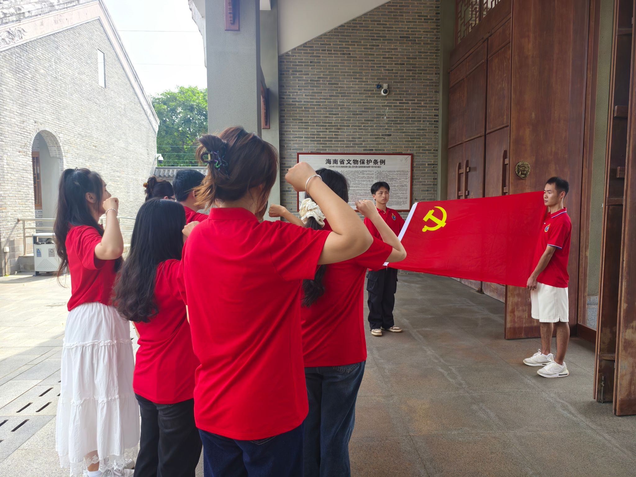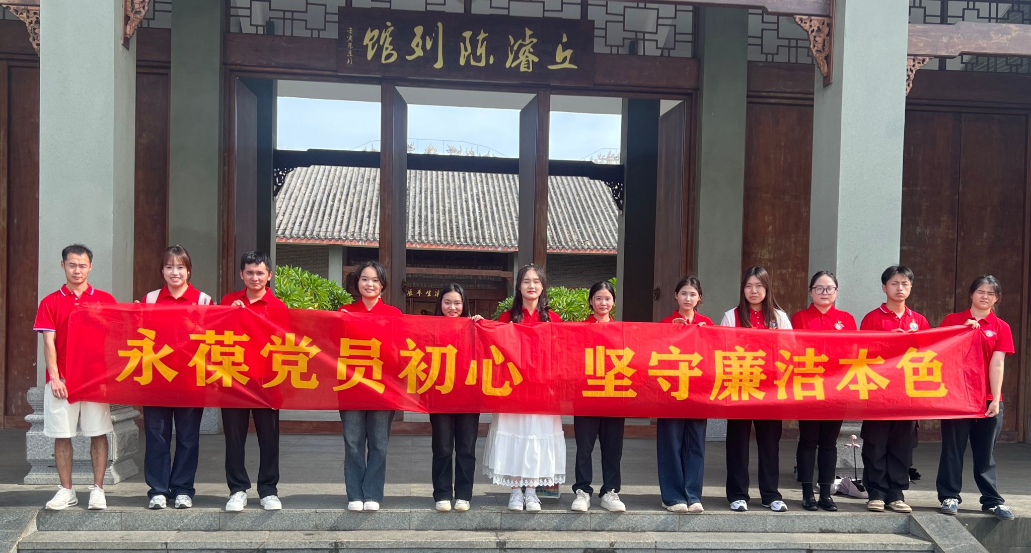 参观结束后,全体师生党员面向鲜红的党旗,高举右拳,以饱满的热情和洪亮的声音,重温了入党誓词。铿锵有力的誓言, 表达了他们对党的无限忠诚与坚定信仰。