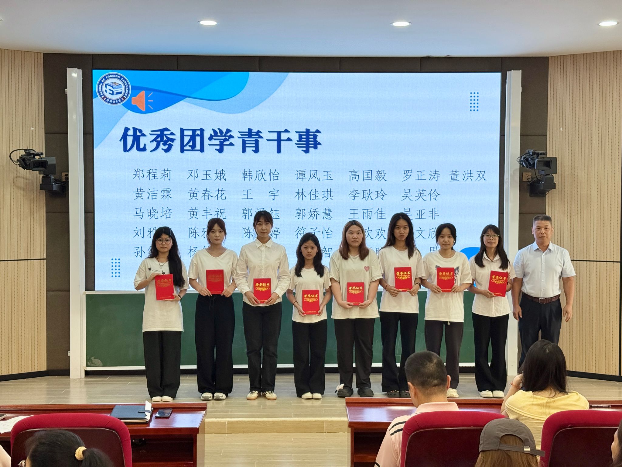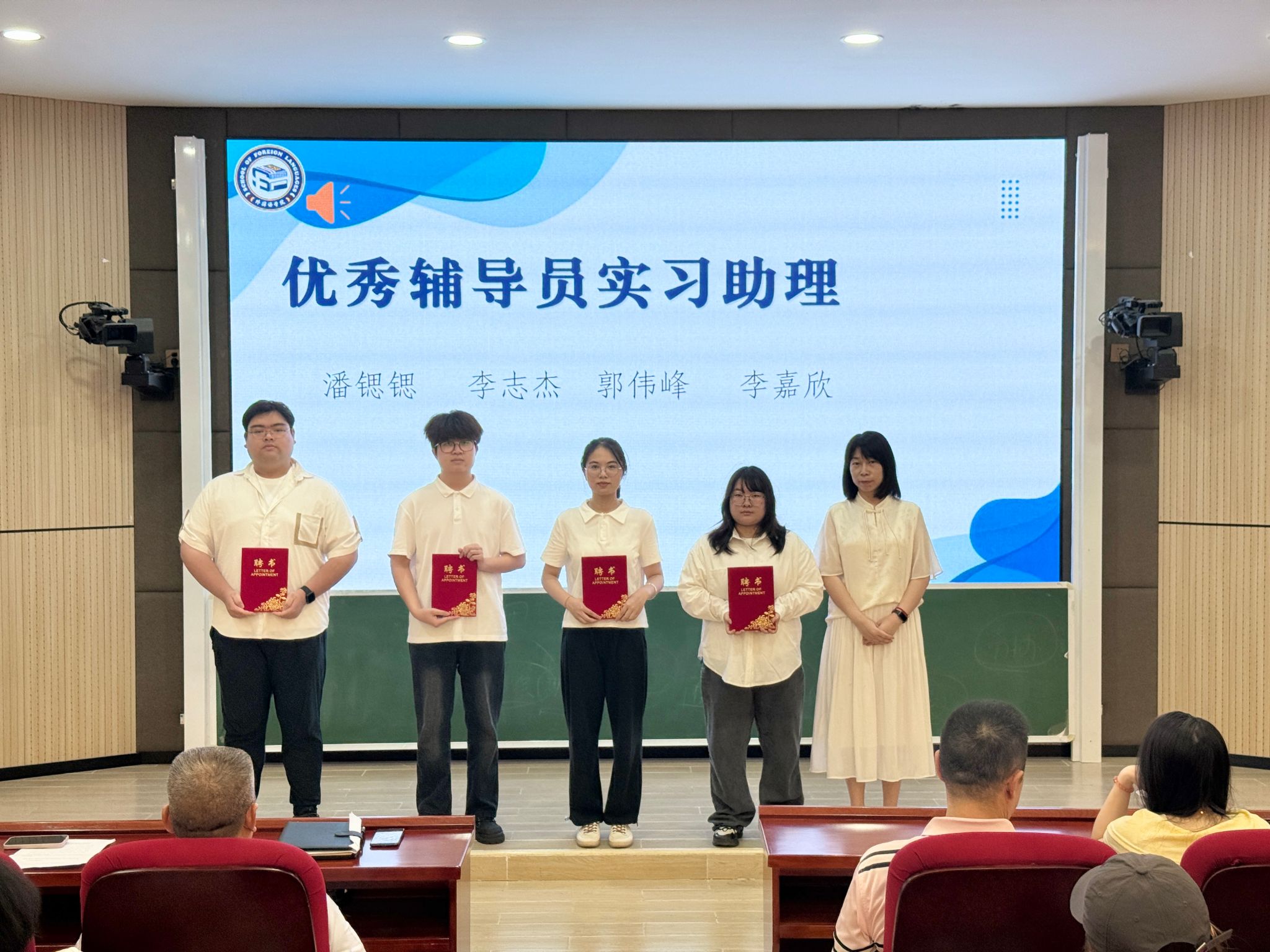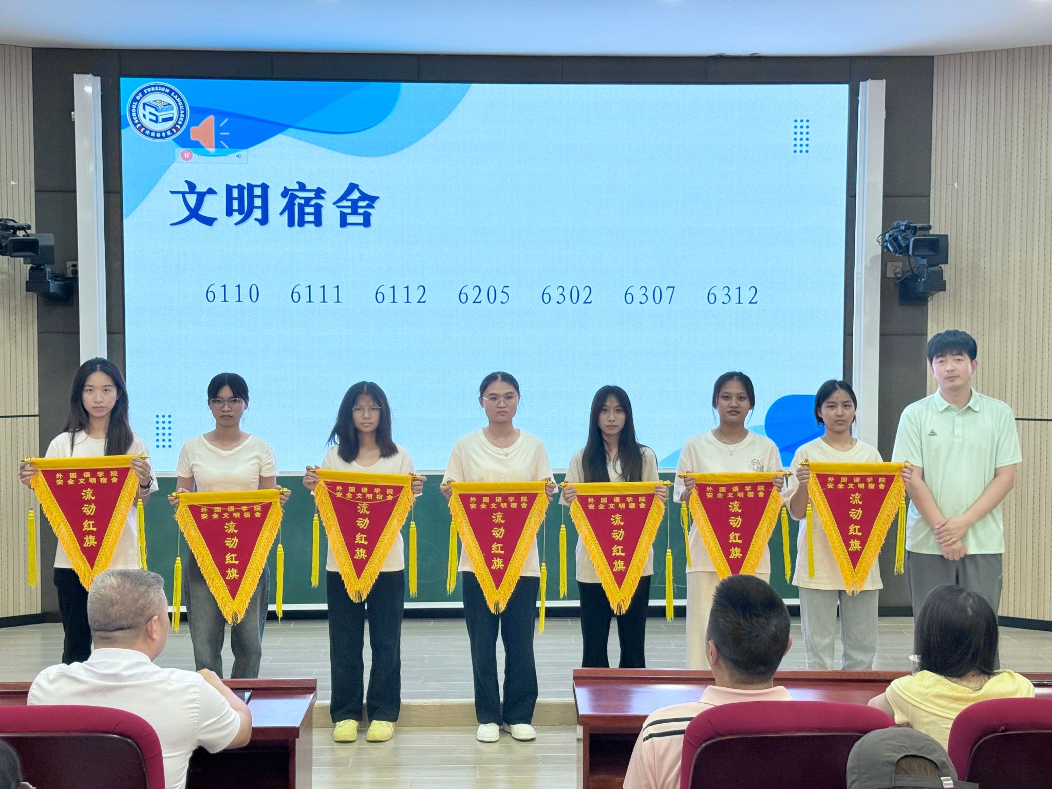 近日,外国语学院对2024-2025学年度荣获“文明宿舍”“优秀辅导员实习助理”“优秀文体骨干”“优秀团学青干事”的集体和个人进行表彰,对即将踏上实习征程的同学们进行动员部署,为下一阶段工作指明方向。