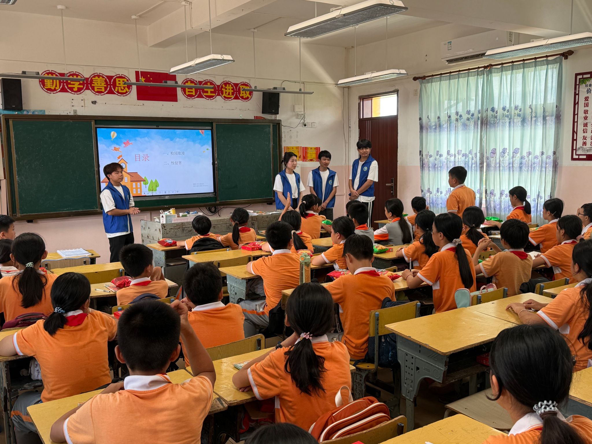 7月1日,机电与汽车工程学院“守护童年” 暑期社会实践团走进海口市琼山区红旗镇中心小学,为学生开展未成年人安全教育活动,以青春力量护航童心成长。