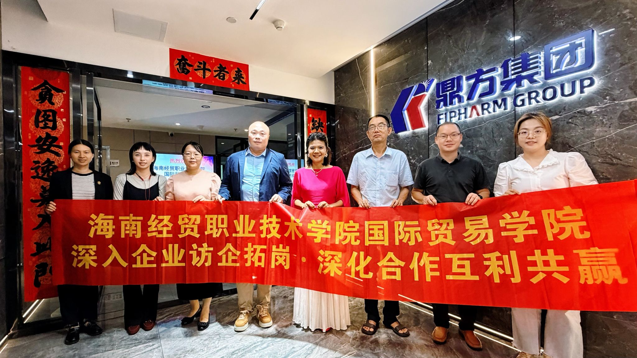近日,国际贸易学院关务与外贸服务专业、国际经济与贸易专业教师一行6人赴海南鼎方科技集团有限公司开展校企合作洽谈。双方围绕共建运营型外贸产业学院、创新课程体系与人才培养机制等议题进行务实交流,并达成合作共识。