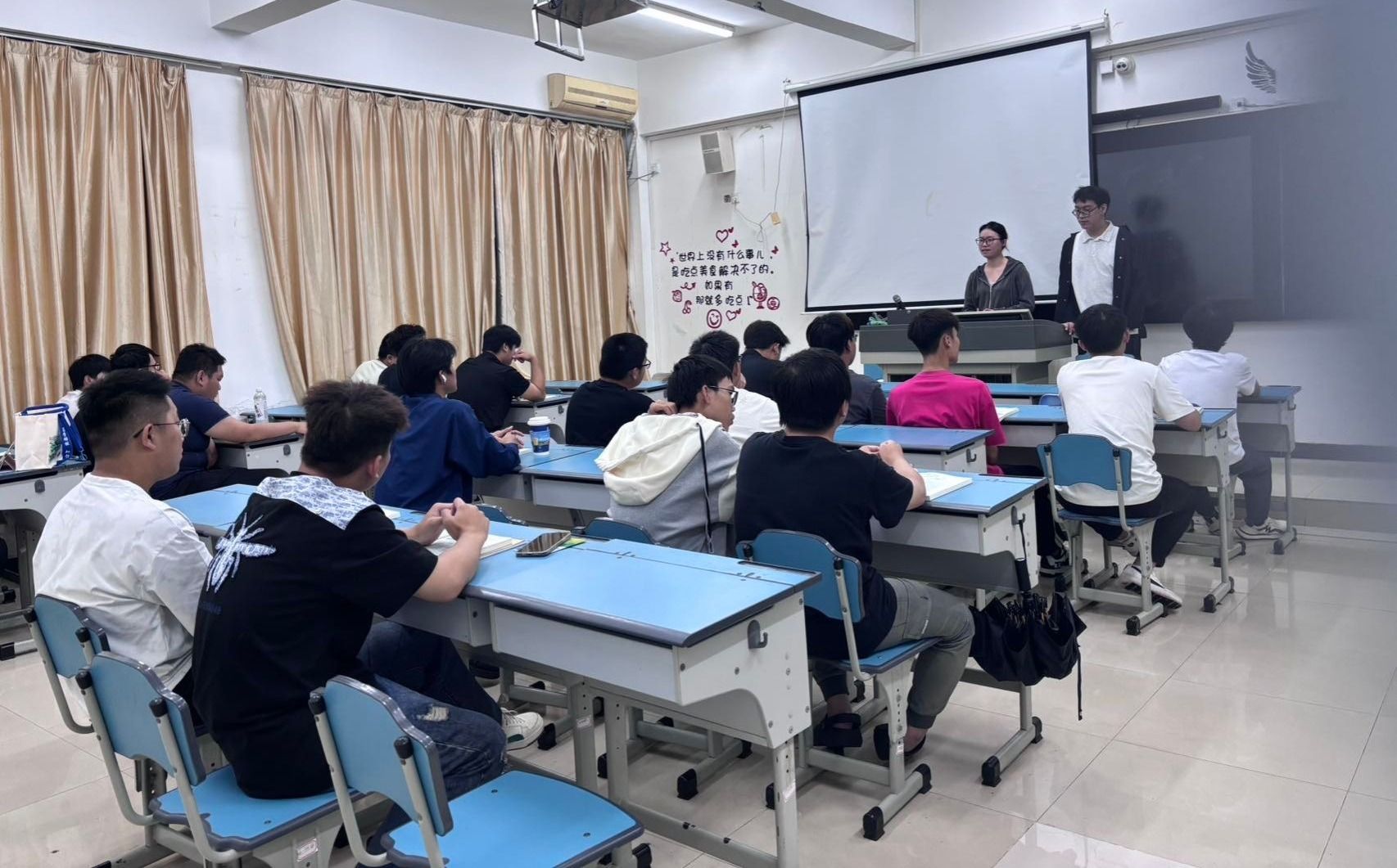 晚间,由党员、入党积极分子和团学干部组成的宣讲团深入新生晚修教室,围绕重阳节的文化内涵与爱国精神的内在联系、新时代青年如何践行爱国主义、优秀学长学姐成长经历等主题开展宣讲,引导新生从入学伊始便扣好“理想信念”的第一粒扣子。