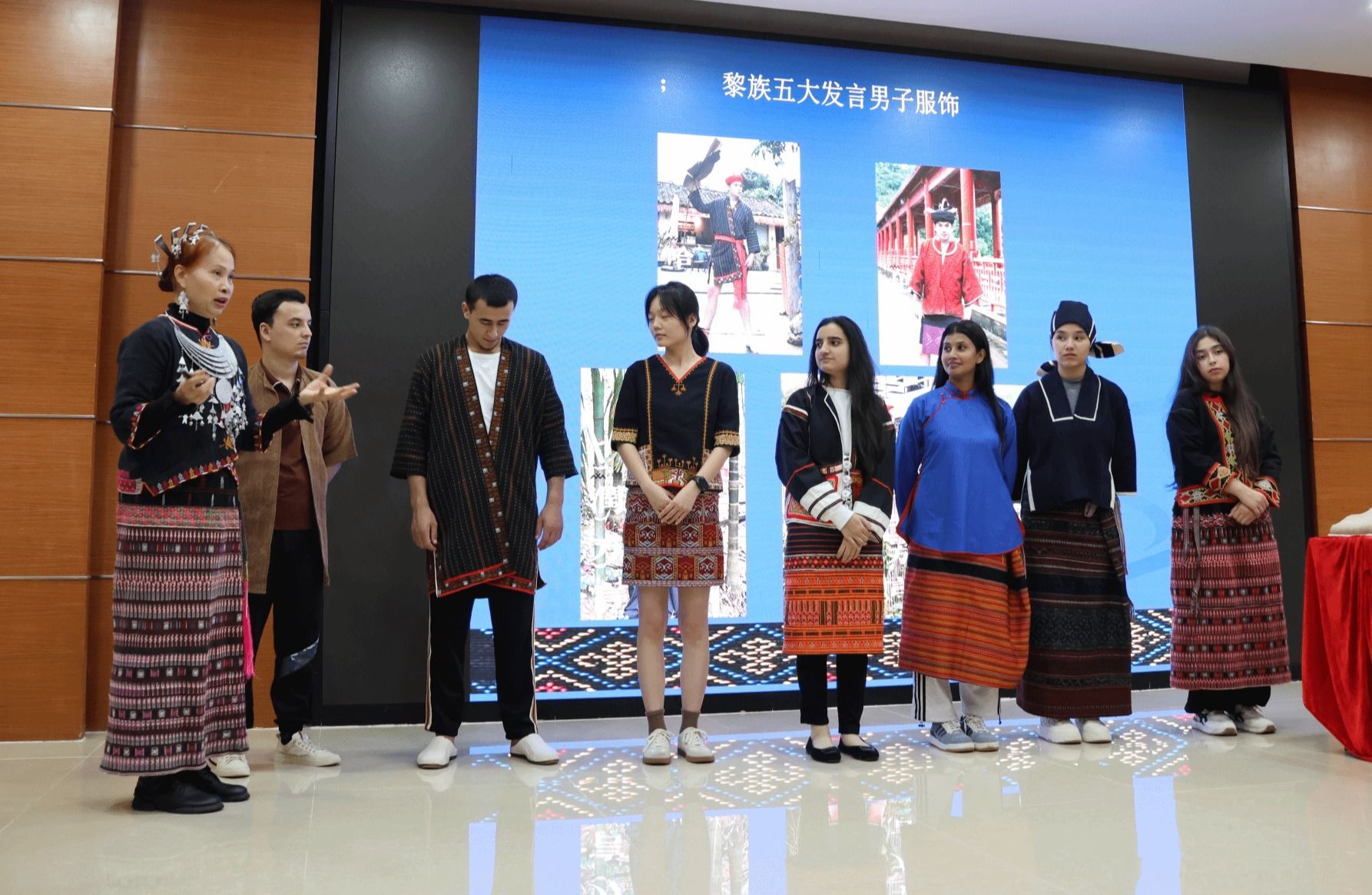 为深化“党建+非遗”融合育人实效,传承弘扬海南本土非遗文化,2025年12月4日,南海工匠、海南省拔尖人才、黎族纺染织绣技艺非遗传承人陈丹再次应邀到校,开展“海南民间服饰与黎族纺染织绣技艺”专题讲座。人文艺术学院服装与服饰设计专业、文化创意与策划专业师生及国际教育学院留学生共计300余人现场聆听学习,沉浸式感受非遗文化独特魅力。