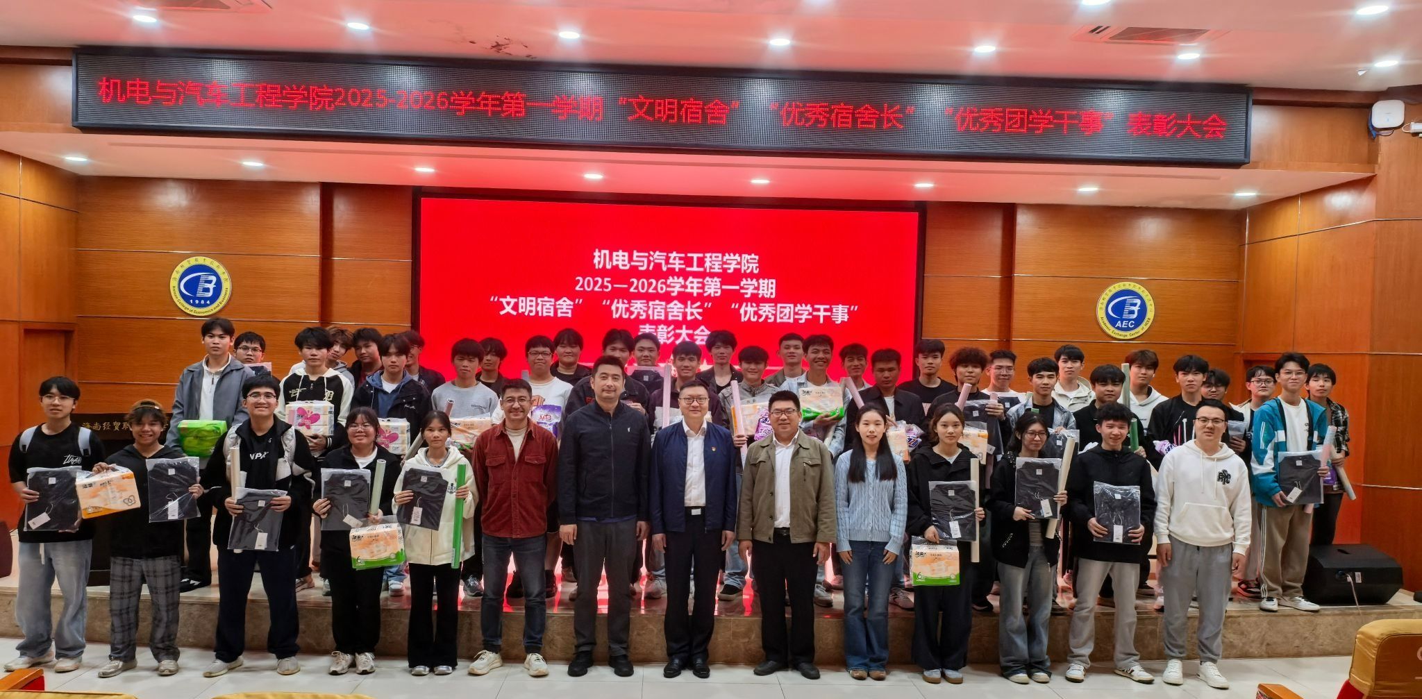 2025年12月10日,机电与汽车工程学院在学术交流中心举行“文明宿舍”“优秀宿舍长”“优秀团学干事”表彰大会。学院师生代表齐聚一堂,共同见证优秀集体与个人的风采。