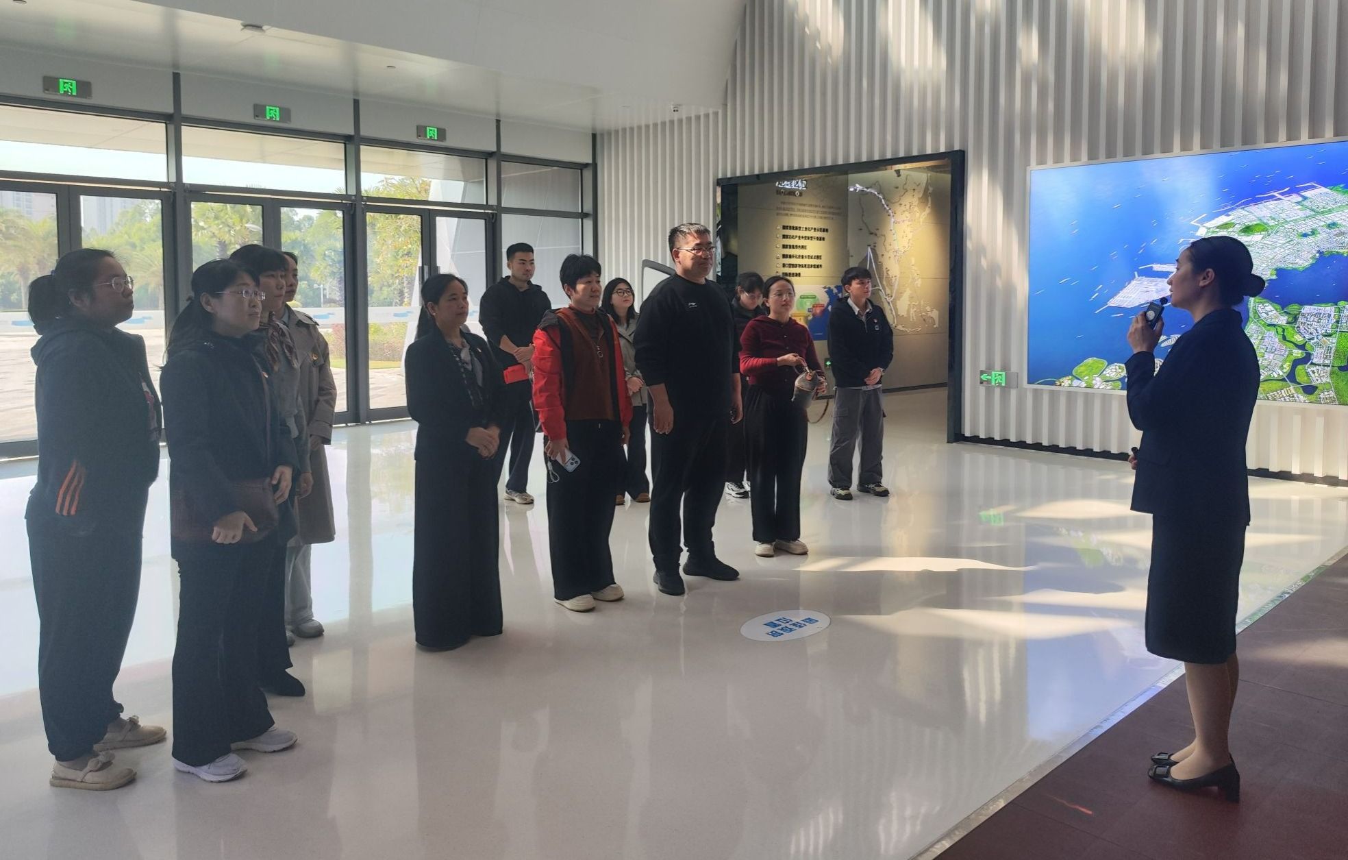 随后,全体党员前往洋浦经济开发区展示馆,沉浸式感受海南自贸港“样板间”的强劲建设脉动。从港口建设日新月异的“中国速度”,到产业集聚提质增效的“中国效益”,党员们真切体悟到国家推进高水平对外开放的坚定决心与强劲动力。党支部书记陈青云结合自贸港建设实践讲授微党课。