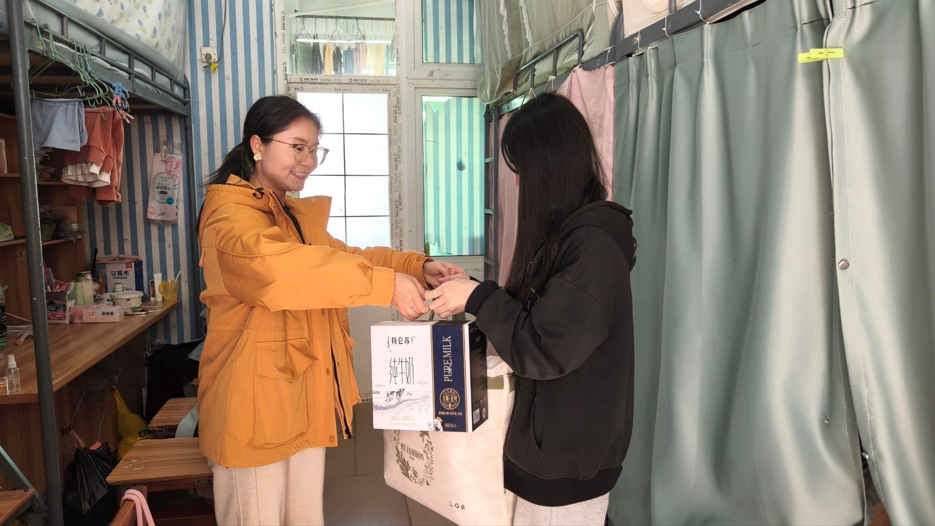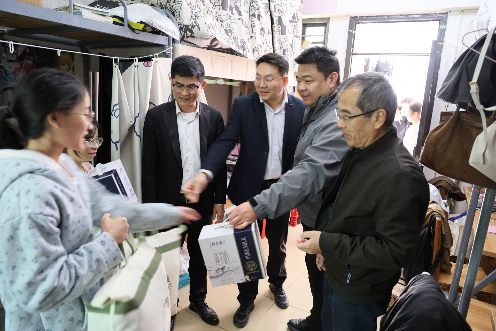 “海口突然降温,大家要注意保暖,照顾好身体。”在学生宿舍,老师们亲手递上物资,轻声叮嘱。接过这份突如其来的“温暖包”,同学们的脸上露出了惊喜和感动的笑容,纷纷表示这份及时的关怀不仅驱散了身上的寒意,更让他们深深感受到了学院大家庭的细致温暖与依靠。