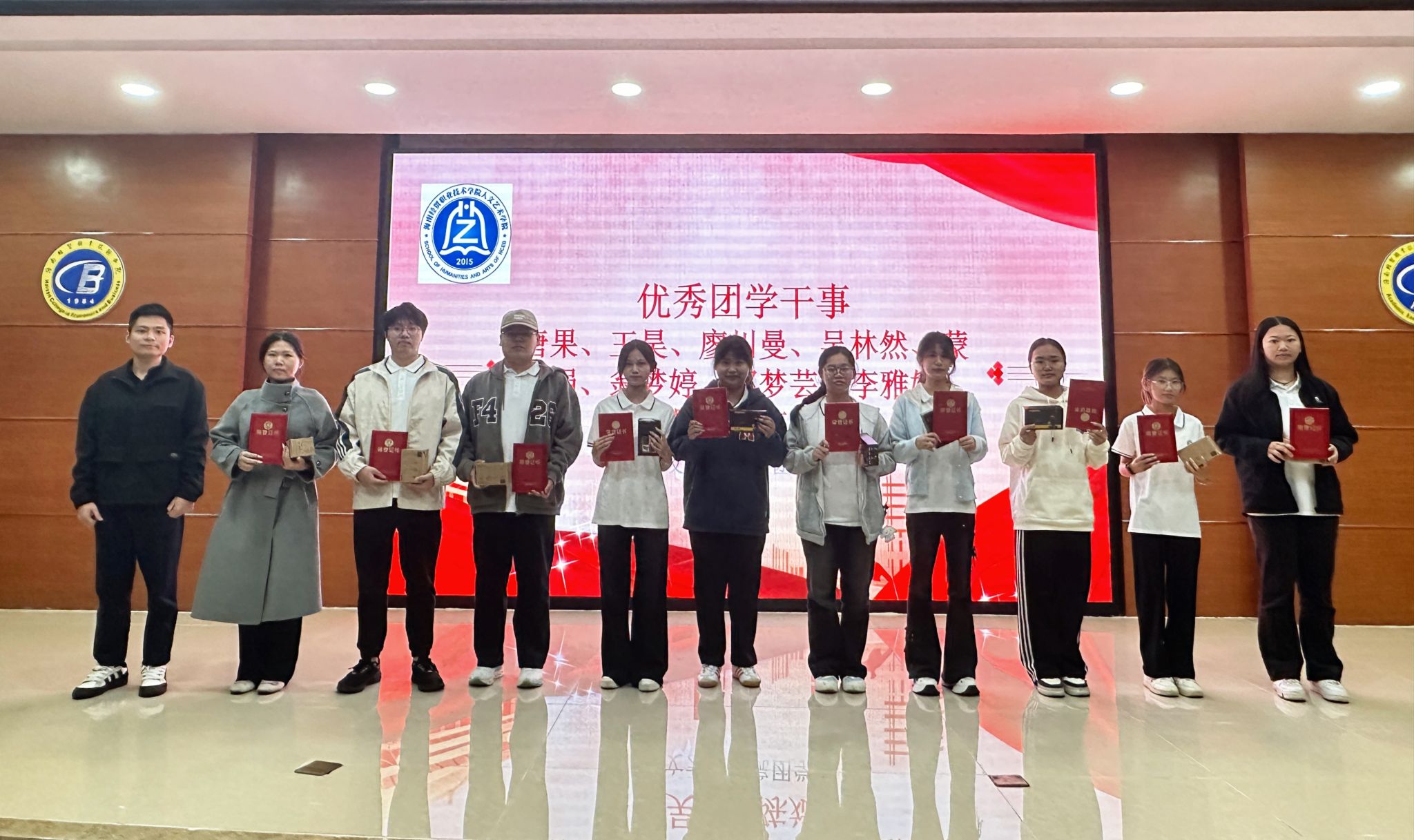 2026年1月9日,人文艺术学院团总支组织召开学院第十一届团学组织述职暨优秀团学干部表彰大会,嘉奖部门和个人在标榜创新、服务同学、社会实践等方面的优越表现,进一步凝聚团学力量、激发奋进活力,激励广大团学骨干以更昂扬的姿态砥砺前行、再创佳绩。