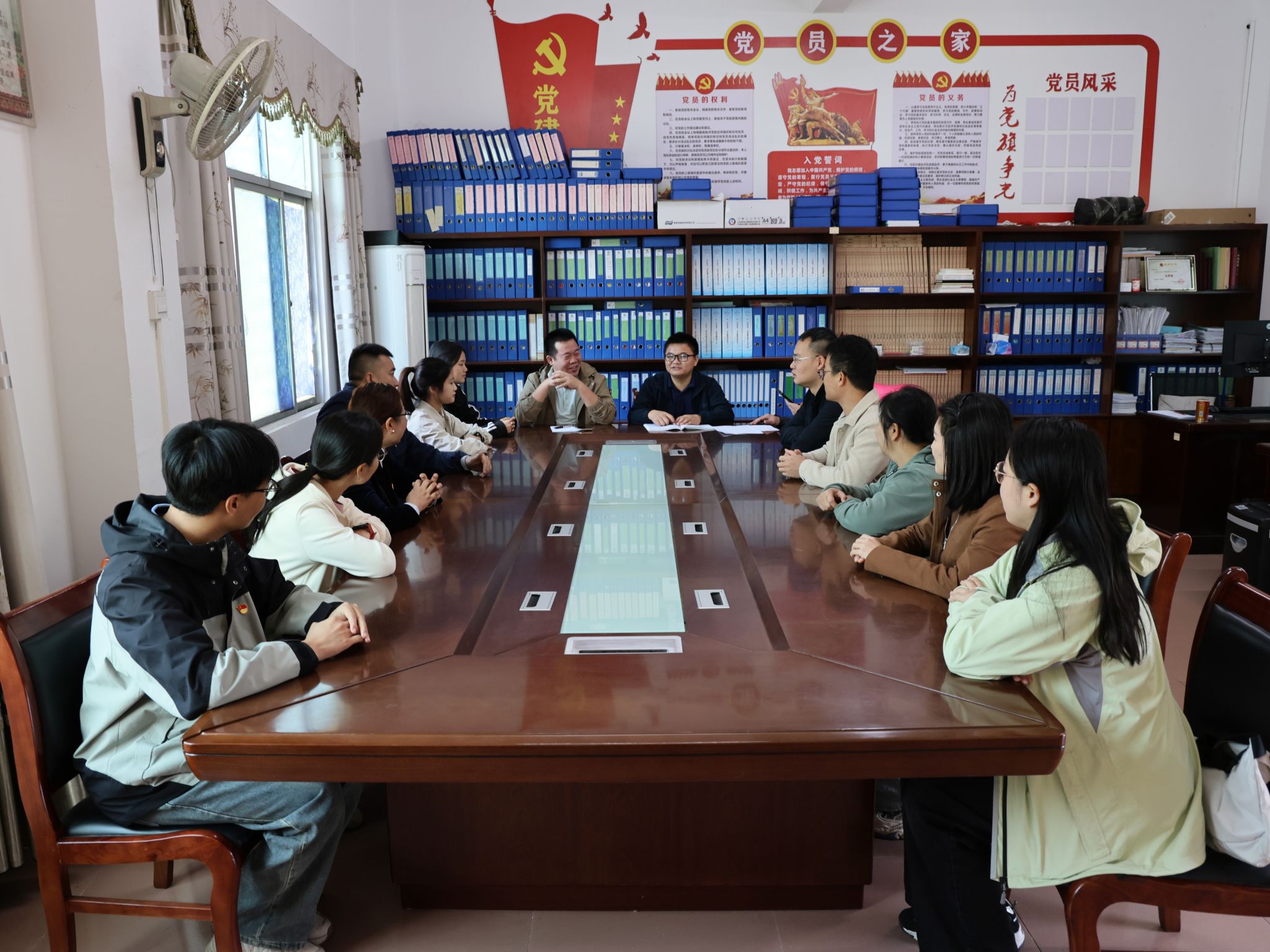 学院师生看望了学校派驻水头村驻村第一书记丁菁华,并与水头村驻点领导罗江、村“两委”书记刘宝忠等开展座谈交流。丁菁华介绍了水头村的生产生活、农产品收成及学校教职工消费帮扶情况。