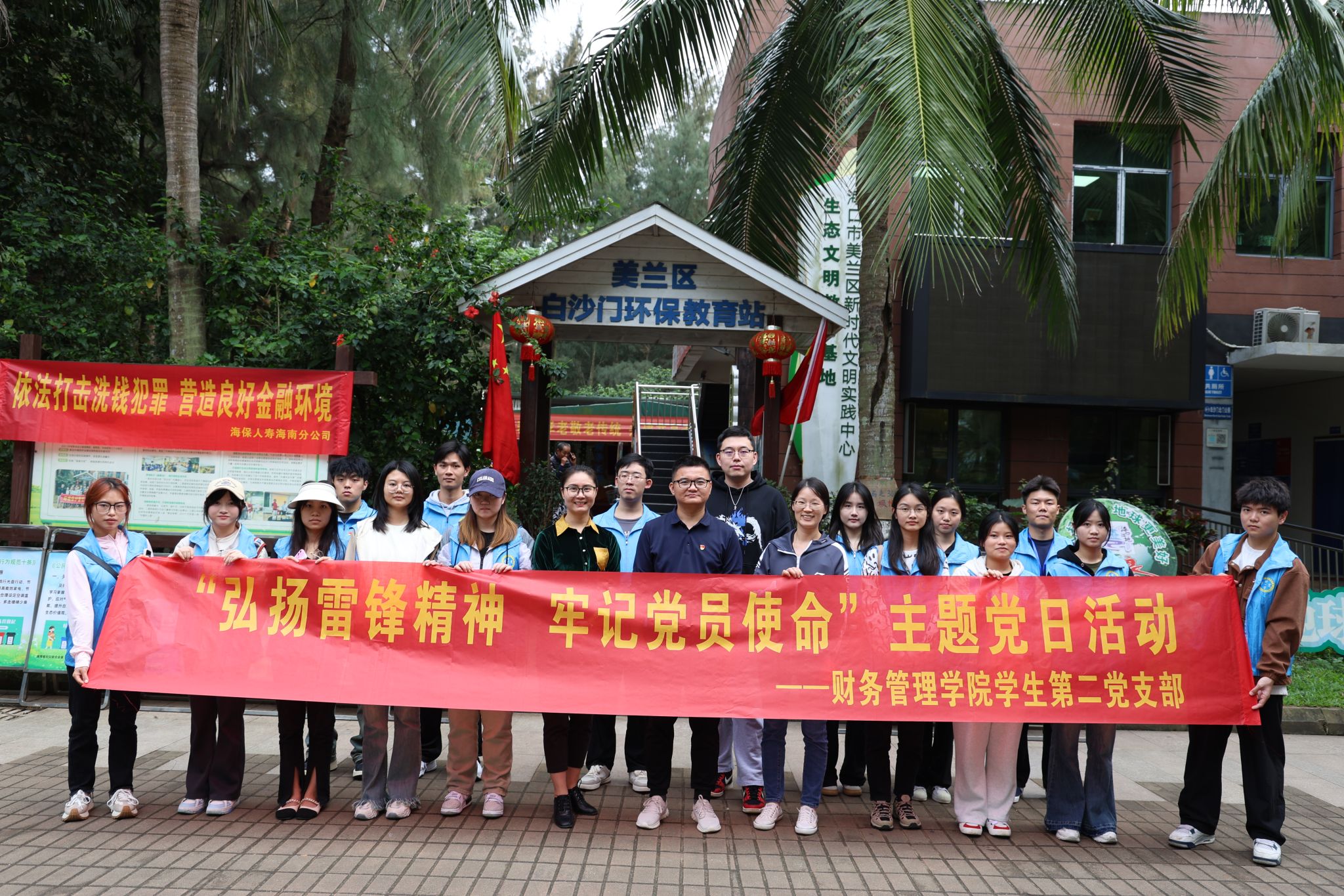2024年3月12日,财务管理学院学生第二党支部组织师生党员和部分入党积极分子代表前往海口市美兰区白沙门环保教育站,开展“弘扬雷锋精神 牢记党员使命”主题党日活动。