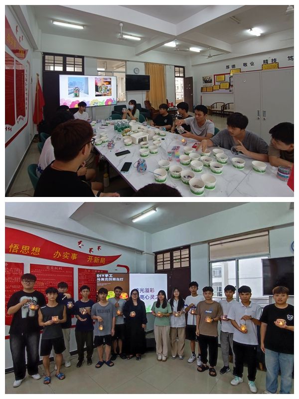同学们一起欣赏不同形式的马赛克镶嵌艺术,了解马赛克灯的特点、颜色搭配、拼贴工艺、制作流程以及注意事项。大家拿着制作材料,兴致勃勃地装扮起来,互相品评交流,介绍自己的设计构思,感受马赛克贴片带来的不同光影变化惊喜。现场笑语盈盈、气氛热烈,一盏盏流光溢彩的马赛克灯在大家手中诞生,像一颗颗星星点亮同学们心里最美的那束光,每一盏灯都装着一个生活梦想,每一道光都将照亮生活的美好。